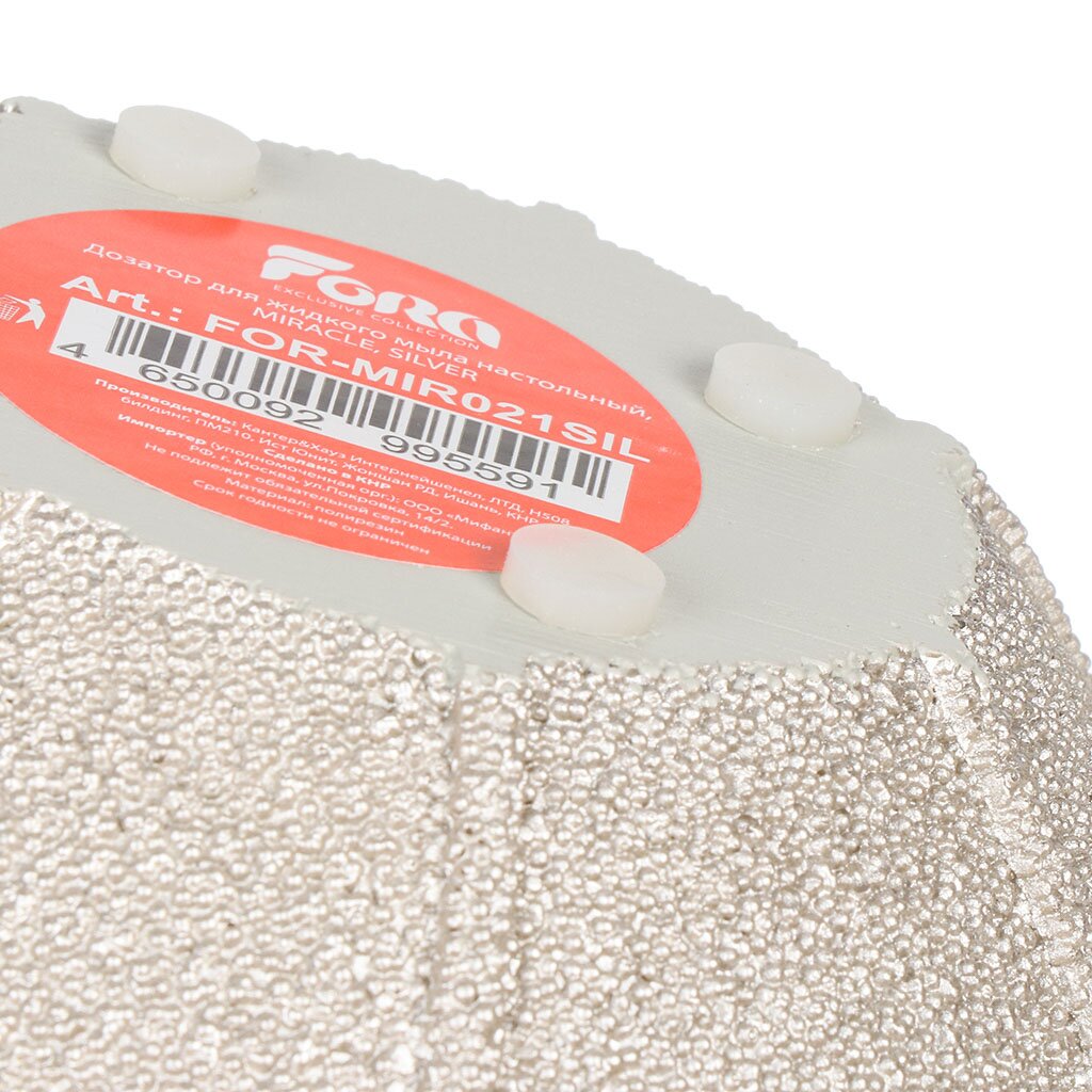 Дозатор для жидкого мыла Fora "Miracle silver" изготовлена из прочного и долговечного материала полеризина. Изделие будет служить верой и правдой долгие годы. Он влагоустойчивый, что позволяет применять его даже в переувлажненных помещениях.