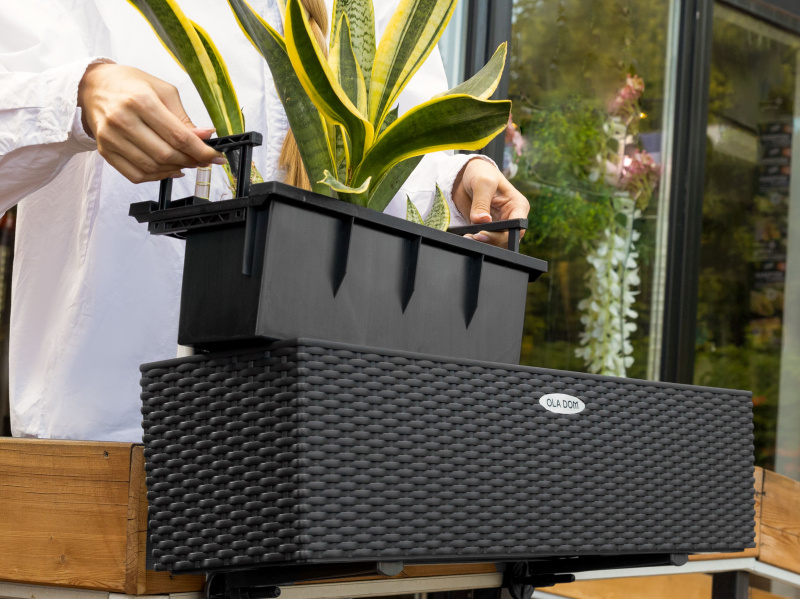 Кашпо Раттан с современным дизайном — имитацией плетения под ротанг. Прямоугольное кашпо будет хорошо смотреться в интерьере дома или на открытом воздухе. Материалы, использованные при производстве изделия, устойчивы ко всем внешних воздействий, таких как ультрафиолет, перепаду температур, повышенная влажность или сильные морозы. Изделие сохраняет свой внешний вид на протяжении длительного периода времени.