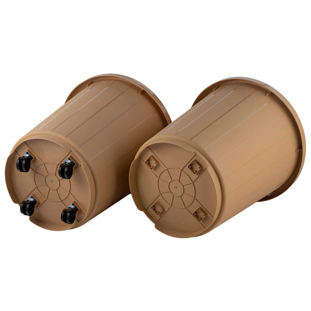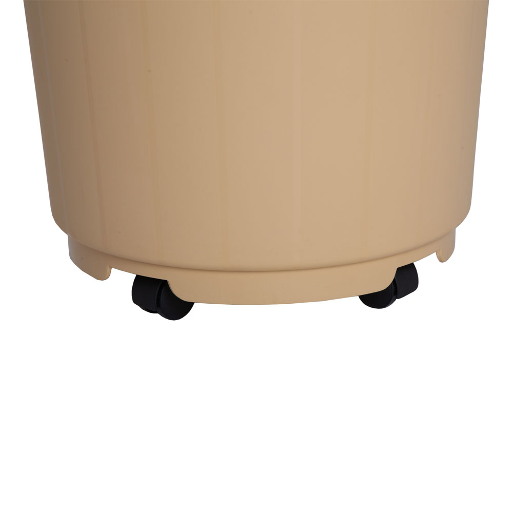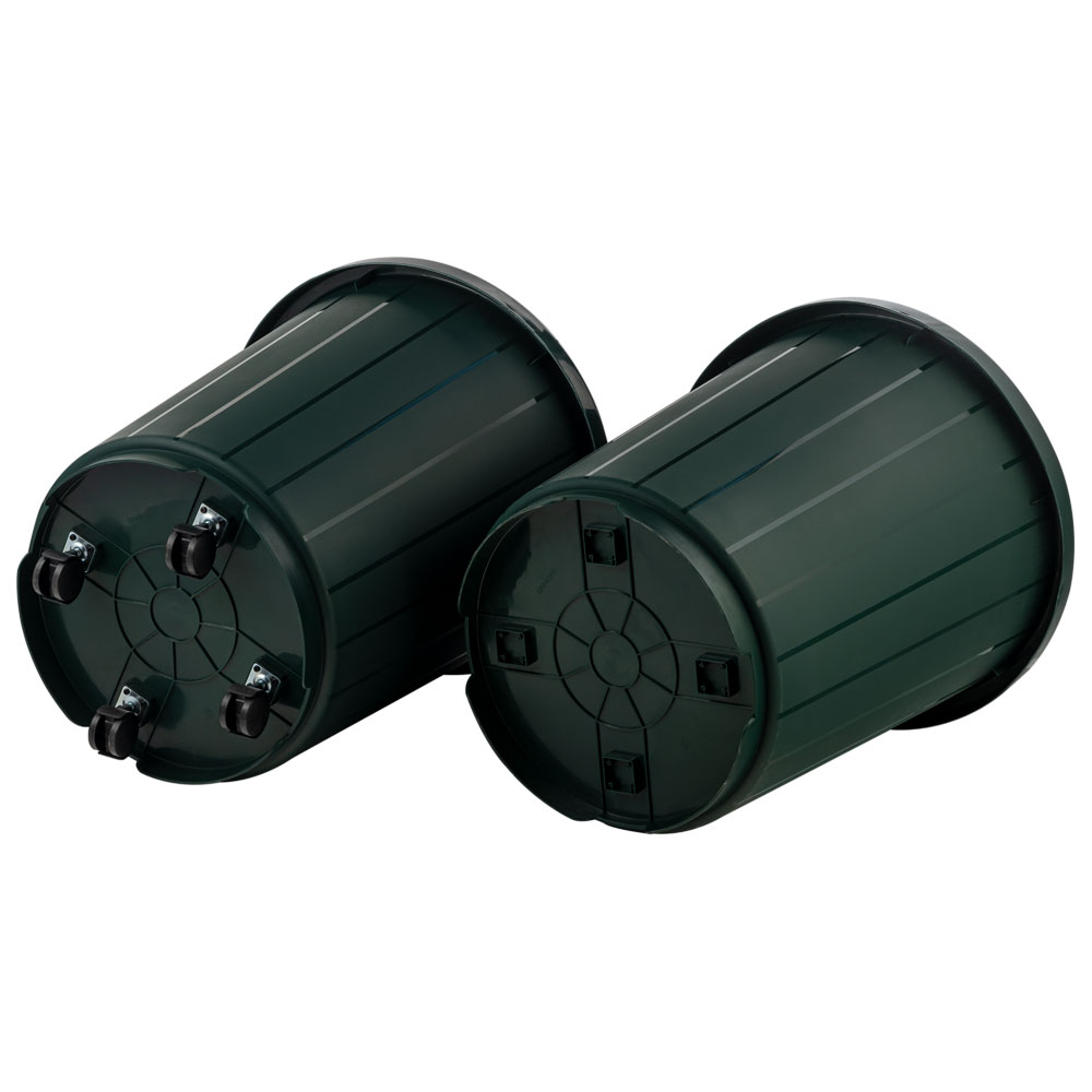 По бокам крышки расположены специальные защелки, для плотного и надежного закрывания. В основании бака четыре колеса, они дают возможность перемещать бак в любом направлении.