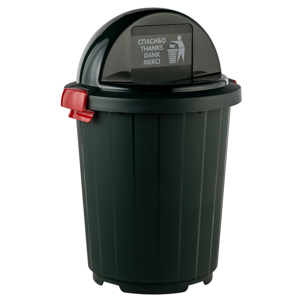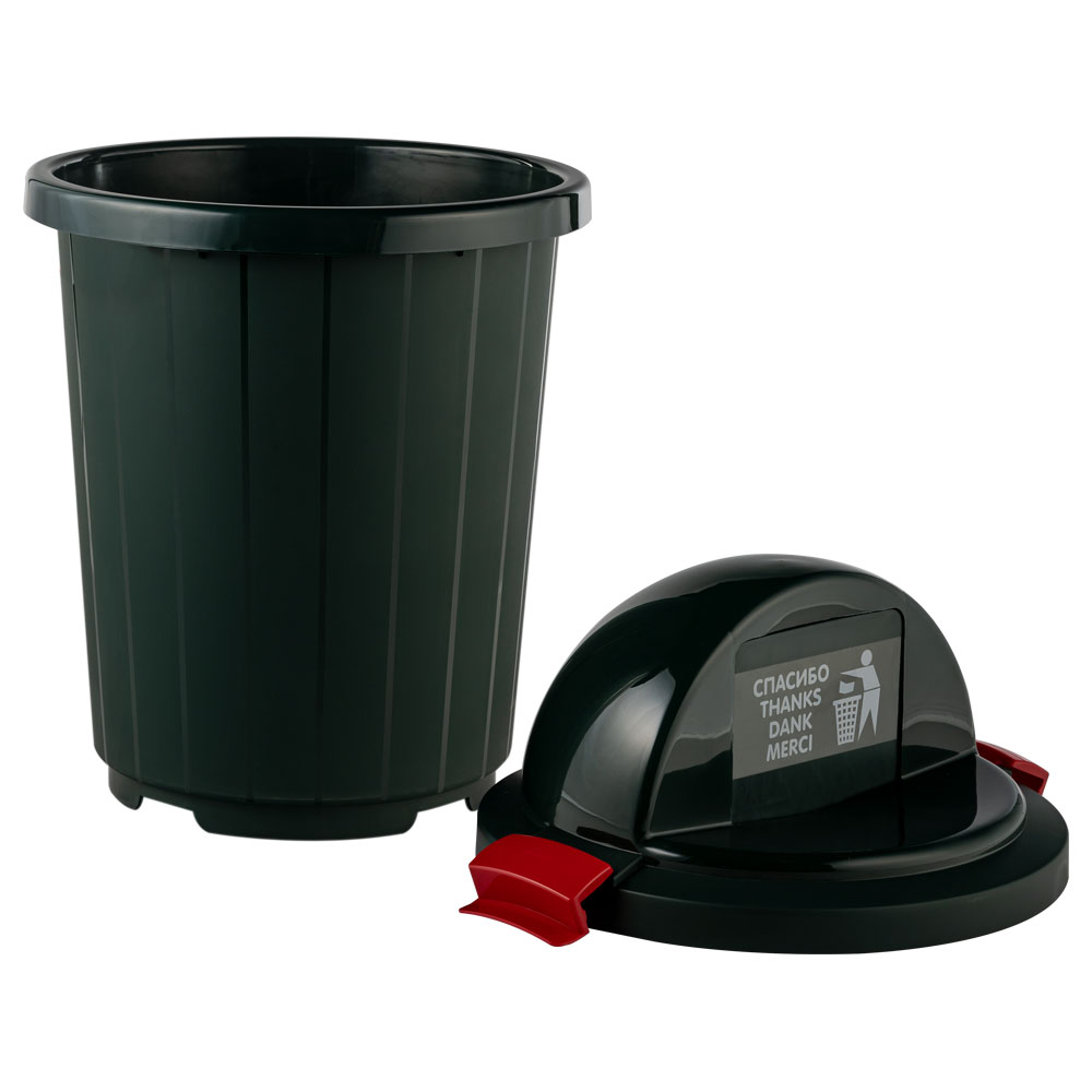 Бак для мусора объемом 105 л с колесами и крышкой-клавишей.