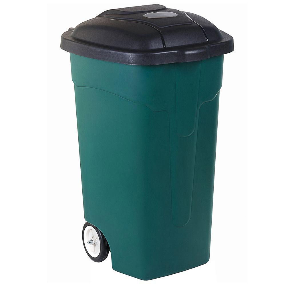 Бак для мусора, изготовленный из высококачественного пластика, оснащен колесиками, эргономичной ручкой и плотно закрывающейся крышкой.