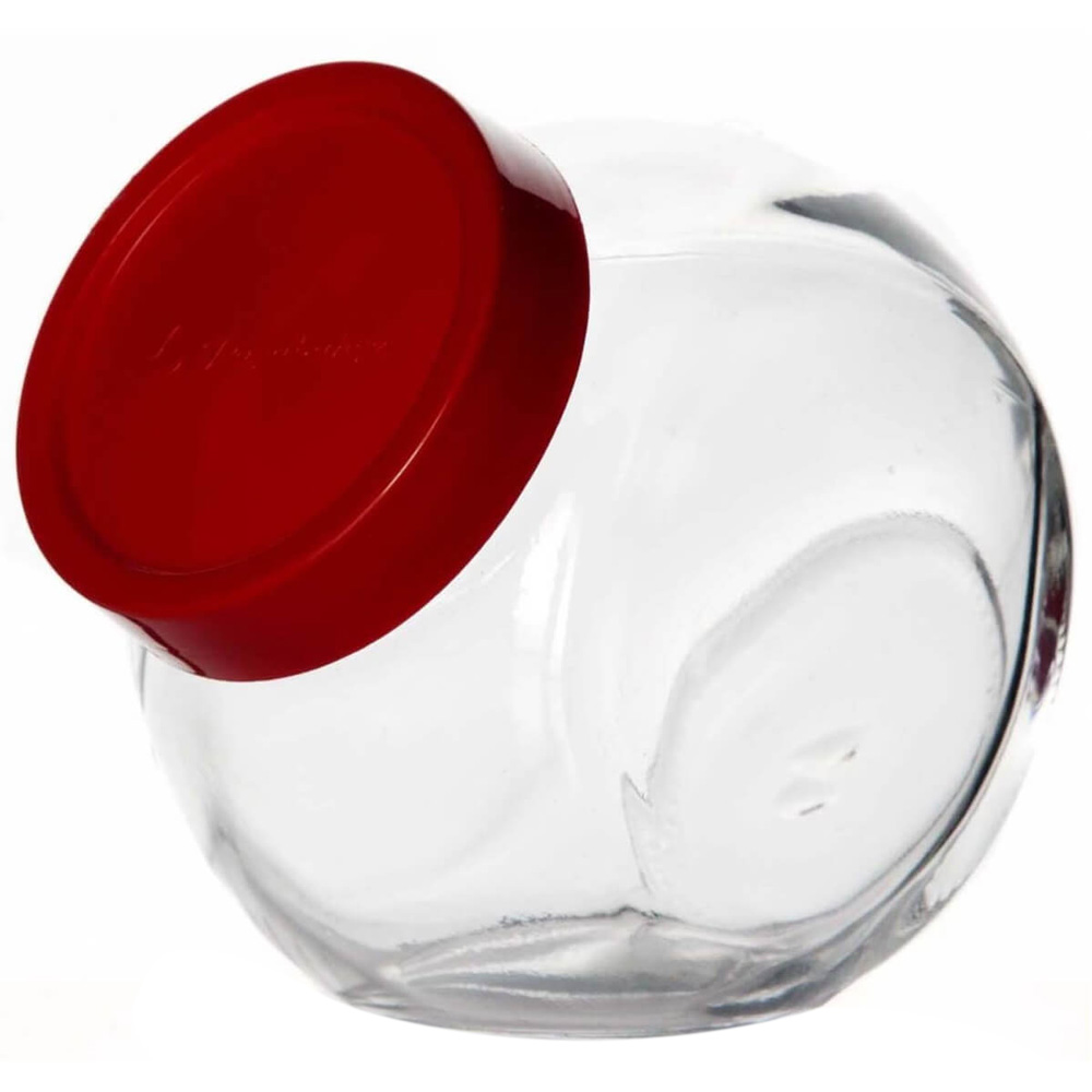 Банка прозрачная стеклянная Pasabahce "Белла" с красной пластиковой крышкой.