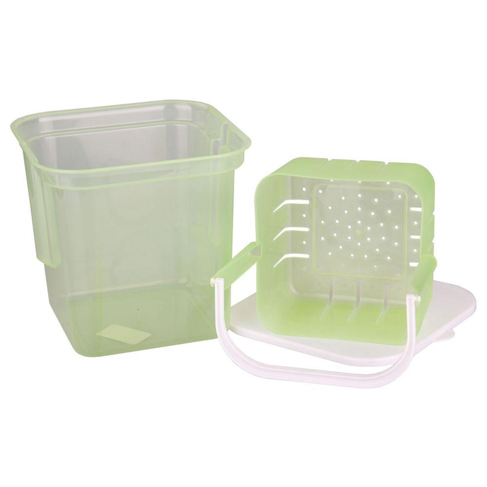 Благодаря специальному внутреннему дуршлагу и эргономичной ручке можно легко и комфортно вынимать готовые продукты из банки, тем временем рассол остается в ёмкости, а продукты – в дуршлаге.