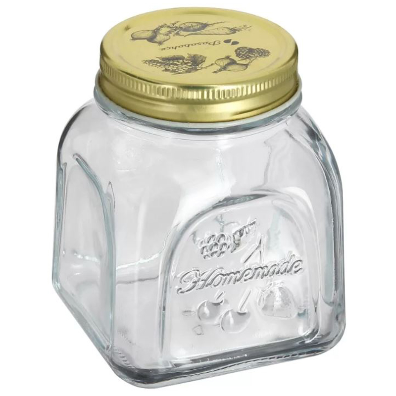 Стеклянная банка Pasabahce с металлической крышкой из серии "Хоммейд" для хранения. Изготовлена из высококачественного стекла с фактурным рисунком овощей, ягод и фруктов по бокам. Плотно завинчивающаяся металлическая крышечка позволяет использовать баночку для хранения не только сыпучих (круп, специй, макарон и прочее), но и других продуктов.