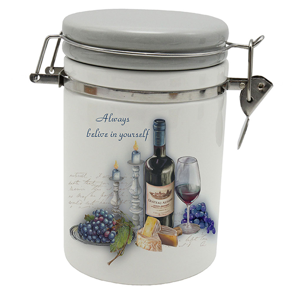 Предназначена для хранения различных сыпучих продуктов (специй, чая, кофе, сахара, круп и т.д.). Крышка плотно закрывается с помощью металлического зажима клипсы, дольше сохраняя свежесть продуктов. Посуда из доломита красивая, расписанная яркими красками, довольно легкая. Отлично подойдет в подарок. Подарочная упаковка. Главным ее преимуществом является низкая цена. Но из-за пористой (неплотной) структуры, изделия из доломита менее прочные.