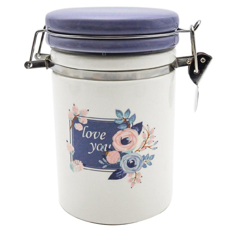 Банка с зажимом "Моя любовь" предназначена для хранения различных сыпучих продуктов (специй, чая, кофе, сахара, круп и т.д.). Крышка плотно закрывается с помощью металлического зажима клипсы, дольше сохраняя свежесть продуктов. С одной стороны декорирована цветочным рисунком и надписью.