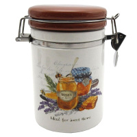Посуда из доломита красивая, расписанная яркими красками, довольно легкая. Отлично подойдет в подарок. Подарочная упаковка. Главным ее преимуществом является низкая цена. Банка для сыпучих продуктов Душистый мед с зажимом. Станет красивым аксессуаром, который прекрасно впишется в кухонный интерьер.