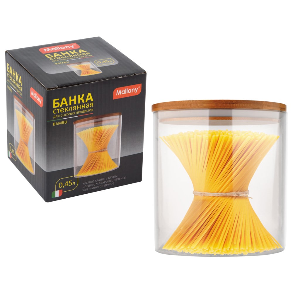 Стеклянная банка BAMBU для сыпучих продуктов с крышкой из бамбука (прокладка из силикона).