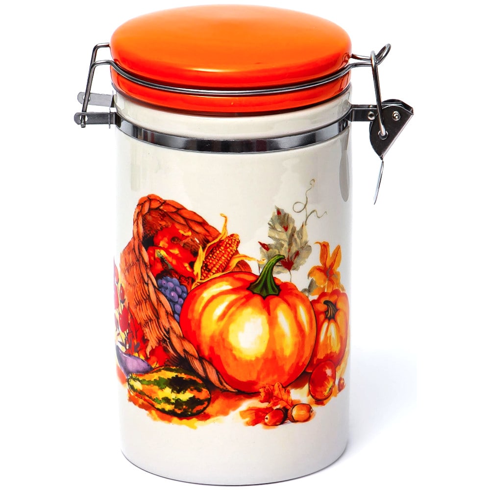 Банка для сыпучих продуктов "Тыква" 1000 мл с клипсой, декорирована яруим рисунком, упакована в подарочную коробку.