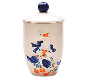 Банка для сыпучих продуктов с крышкой «Гуси» выполнена из высококачественной доломитовой керамики и покрыта глазурью, имеет гладкую поверхность и оформлено красочным изображением. Изделие станет незаменимым помощником на кухне.