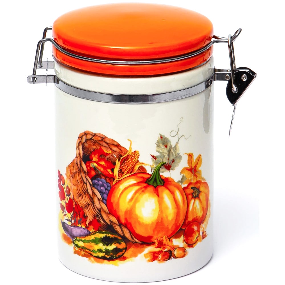Банка для сыпучих продуктов "Тыква" 850 мл с клипсой, декорирована яруим рисунком, упакована в подарочную коробку.