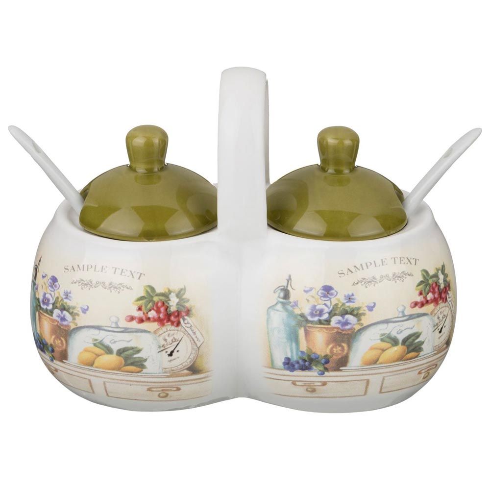 Крышки защитят содержимое от влаги, пыли, насекомых и обветривания. В них предусмотрены отверстия для размещения ложек (представлены в наборе).