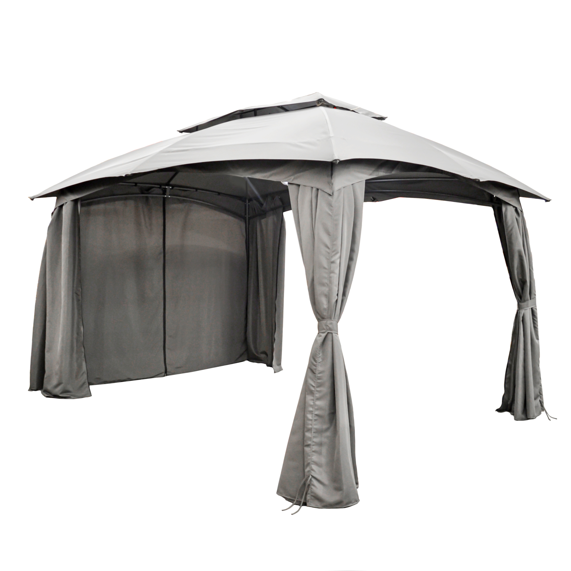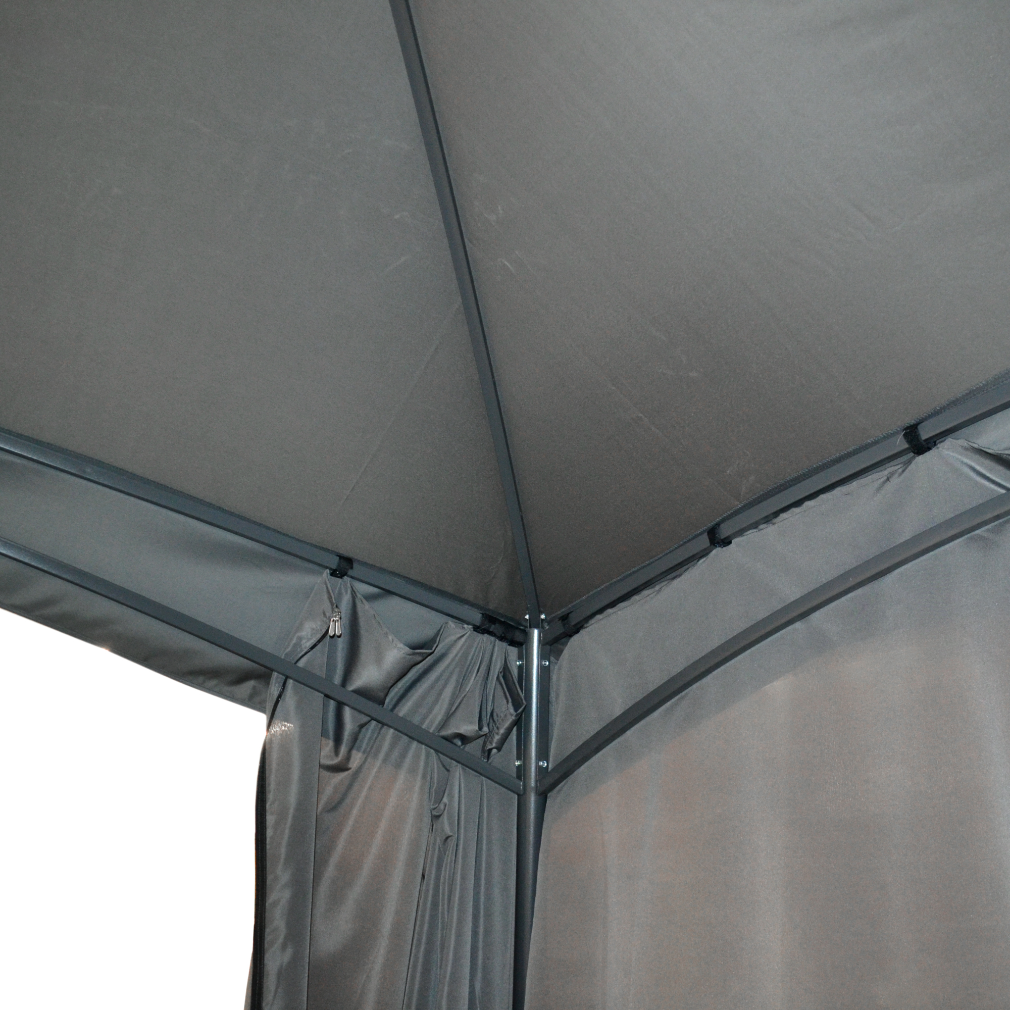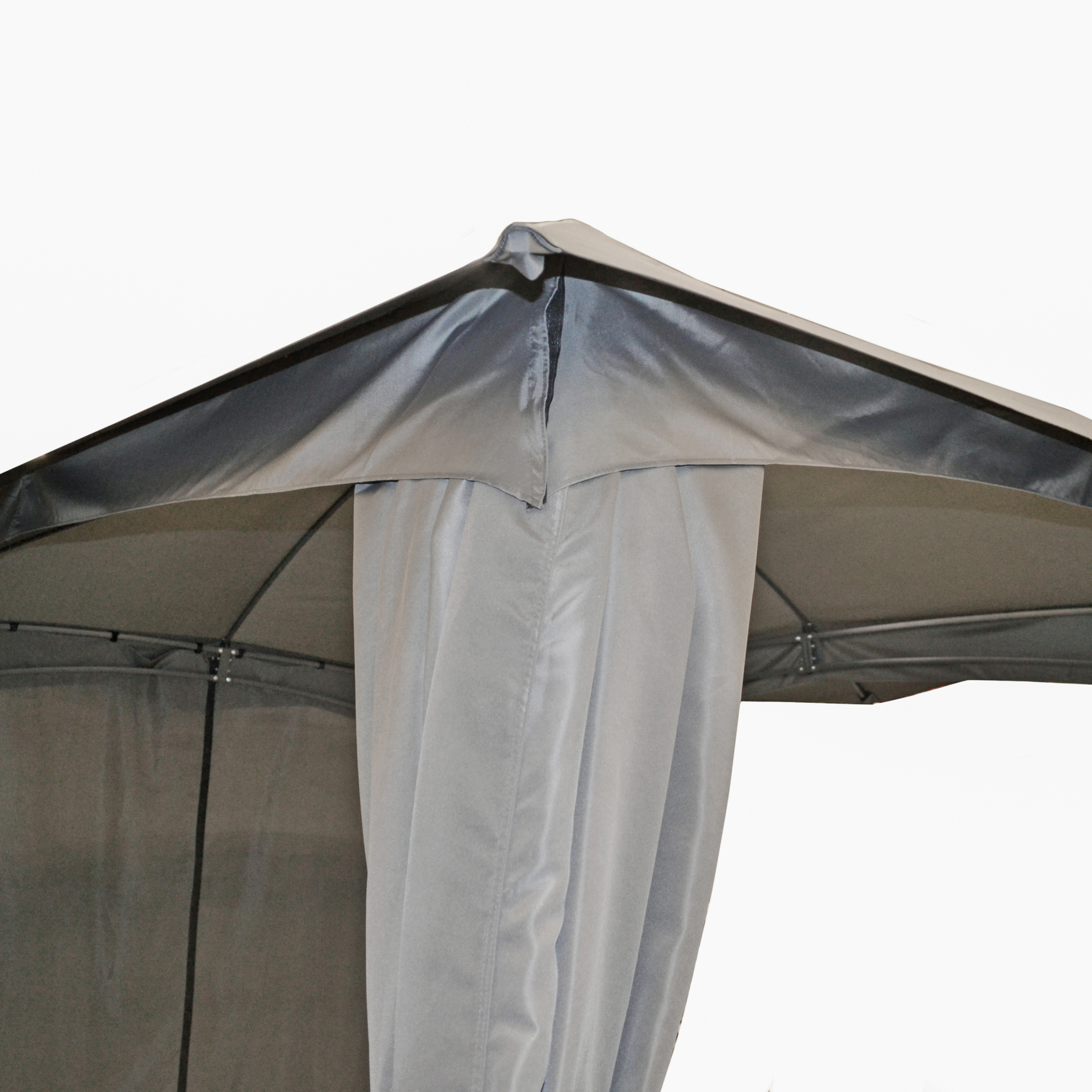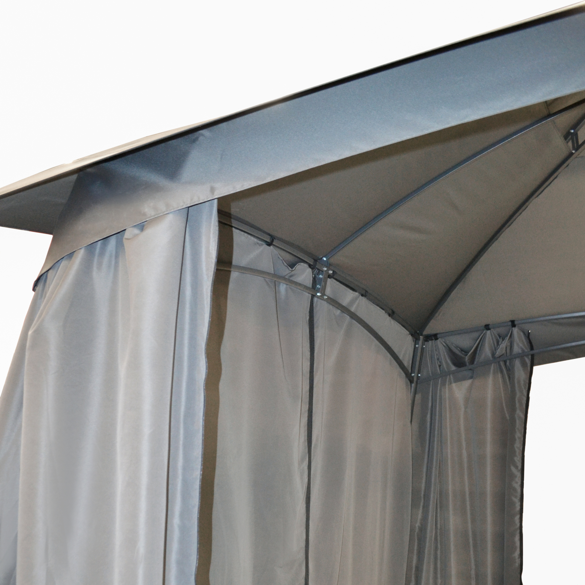Садовая беседка со шторами сделает дачный отдых намного комфортнее. ХАРАКТЕРИСТИКИ - Размеры беседки: 3х4м. - Основа каркаса: сталь. - Диаметр несущей трубы: 48мм, - Поперечные стальные балки: 20х20мм. - Стальные ребра: 17х17мм. - Порошковое покрытие. - Цвет: серый. - В комплекте тент, боковые панели. - Плотность тента с ПВХ покрытием: 250гм/2.