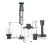 Комплект аксессуаров: мерный стакан (800 мл), насадка для пюре, насадка-венчик, насадка-капучинатор, насадка-кофемолка, насадка-миксер, чоппер (650 мл).