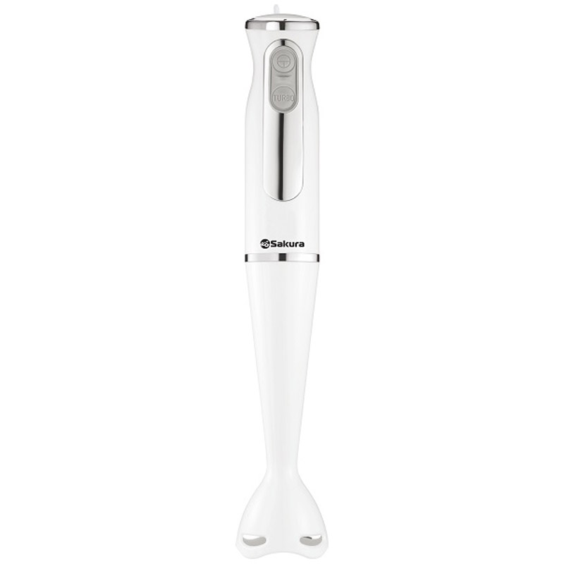 Погружной блендер Sakura SA-6248W изготовлен в белом цвете. Максимальная присоединительная мощность прибора — 600 Вт. Подключается посредством сетевого кабеля. Управление механическое. Есть два скоростных режима и функция «Турборежим». Корпус блендера изготовлен из пластика, погружная часть — из стали, устойчивой к механическим повреждениям и коррозии.