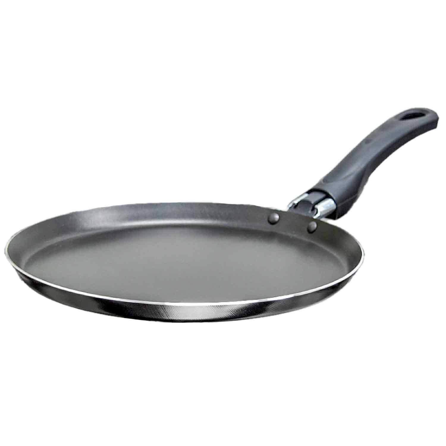 Блинница произведена в России. Она изготовлена из алюминия и имеет антипригарное покрытие, что обеспечивает удобство использования и долговечность. У сковороды круглая форма и чёрная расцветка. Ручка выполнена из бакелита - материала, который не нагревается во время готовки. Сковорода предназначена для использования на газовых и электрических плитах.