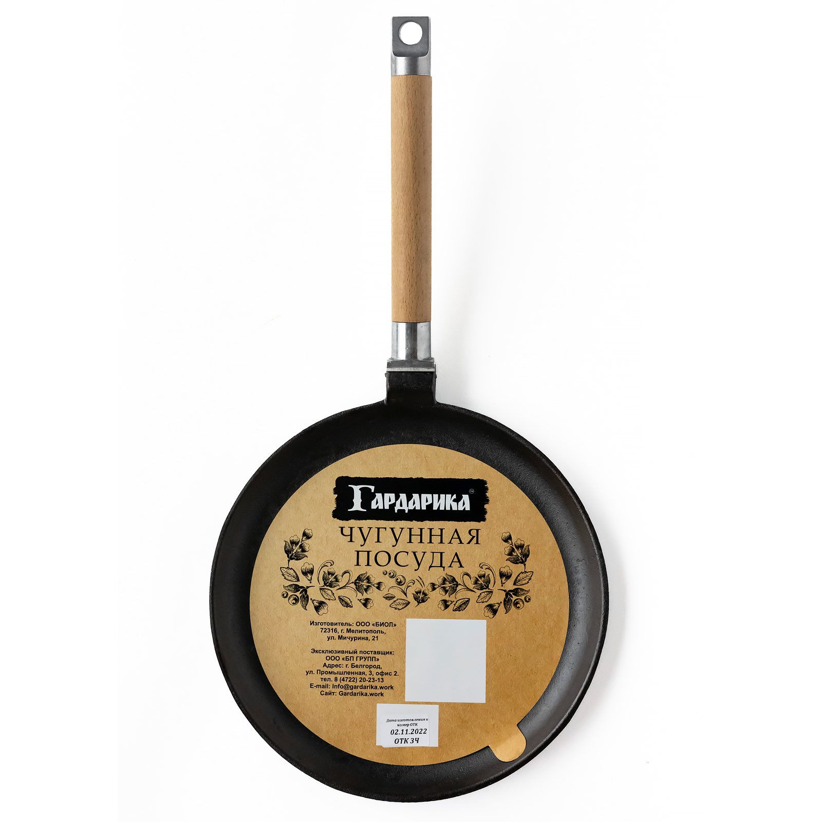 Сковорода-блинница Гардарика 0824 изготовлена из высокопрочного чугуна, который надолго сохраняет тепло и способствует равномерному пропеканию. Модель имеет невысокие края, что удобно для приготовления блинов, оладий и других блюд. Изделие подходит для использования с индукционными, электрическими и другими типами плит, также можно устанавливать посуду в духовку.