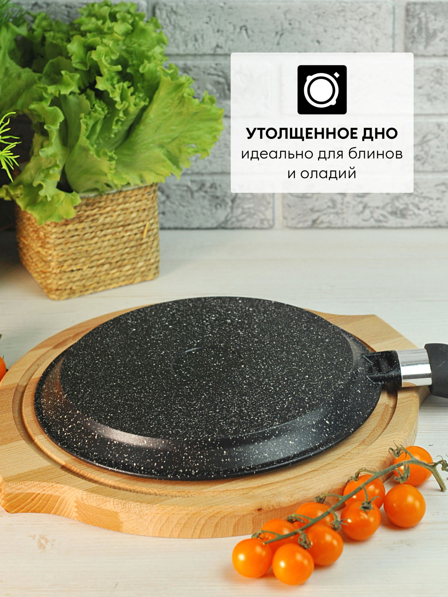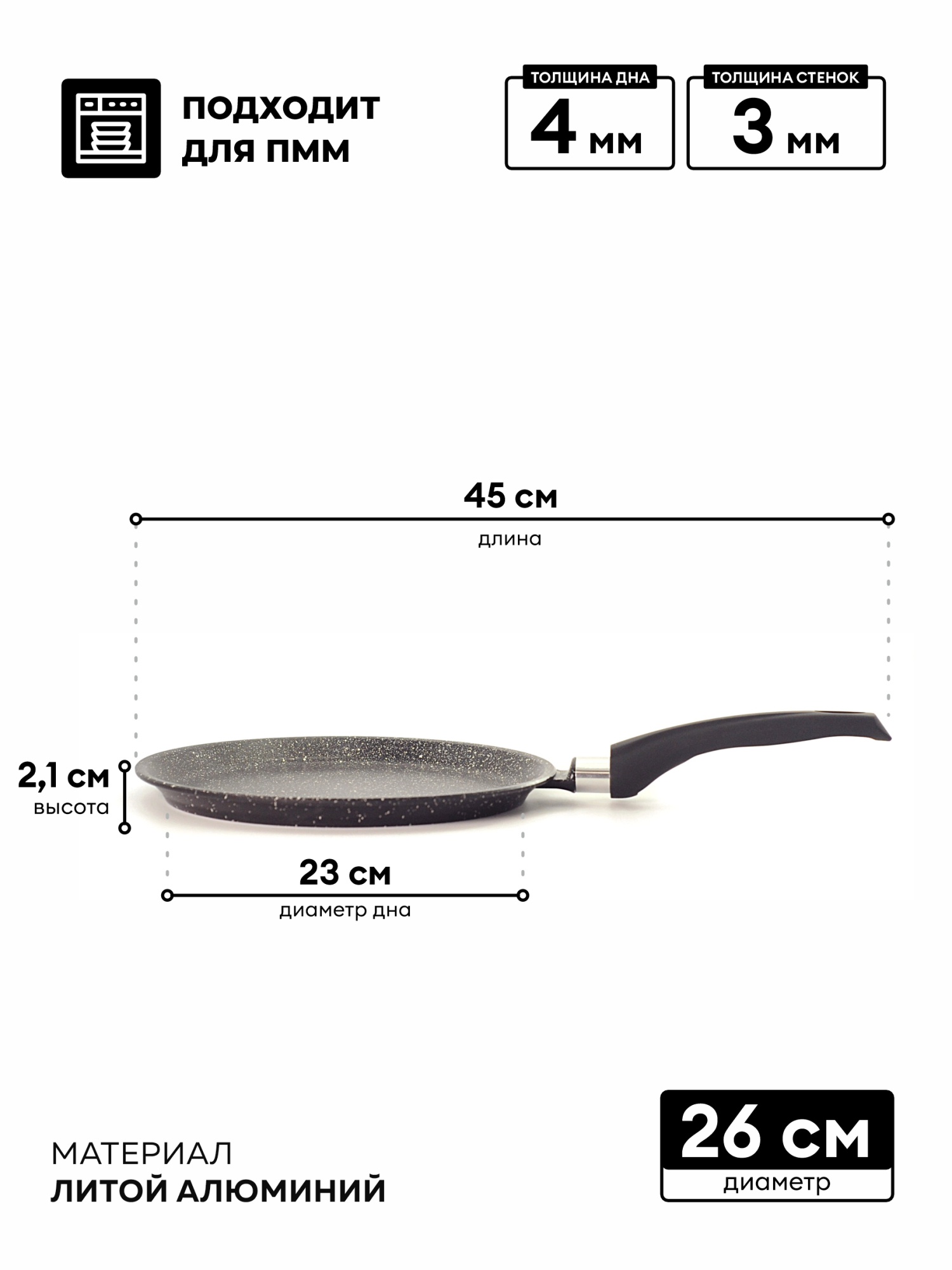 Блинница "Гранит Induction" выполнена из качественного пищевого алюминия. Надежное антипригарное покрытие не позволит блинам пригореть, даже если вы используете минимум масла. Пользоваться такой блинницей одно удовольствие!