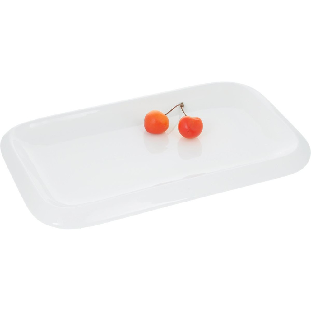 <comment>Как специалист, оценил прямоугольную форму блюда – удобно сервировать. Фарфор качественный, в посудомойке моется отлично.</comment>
