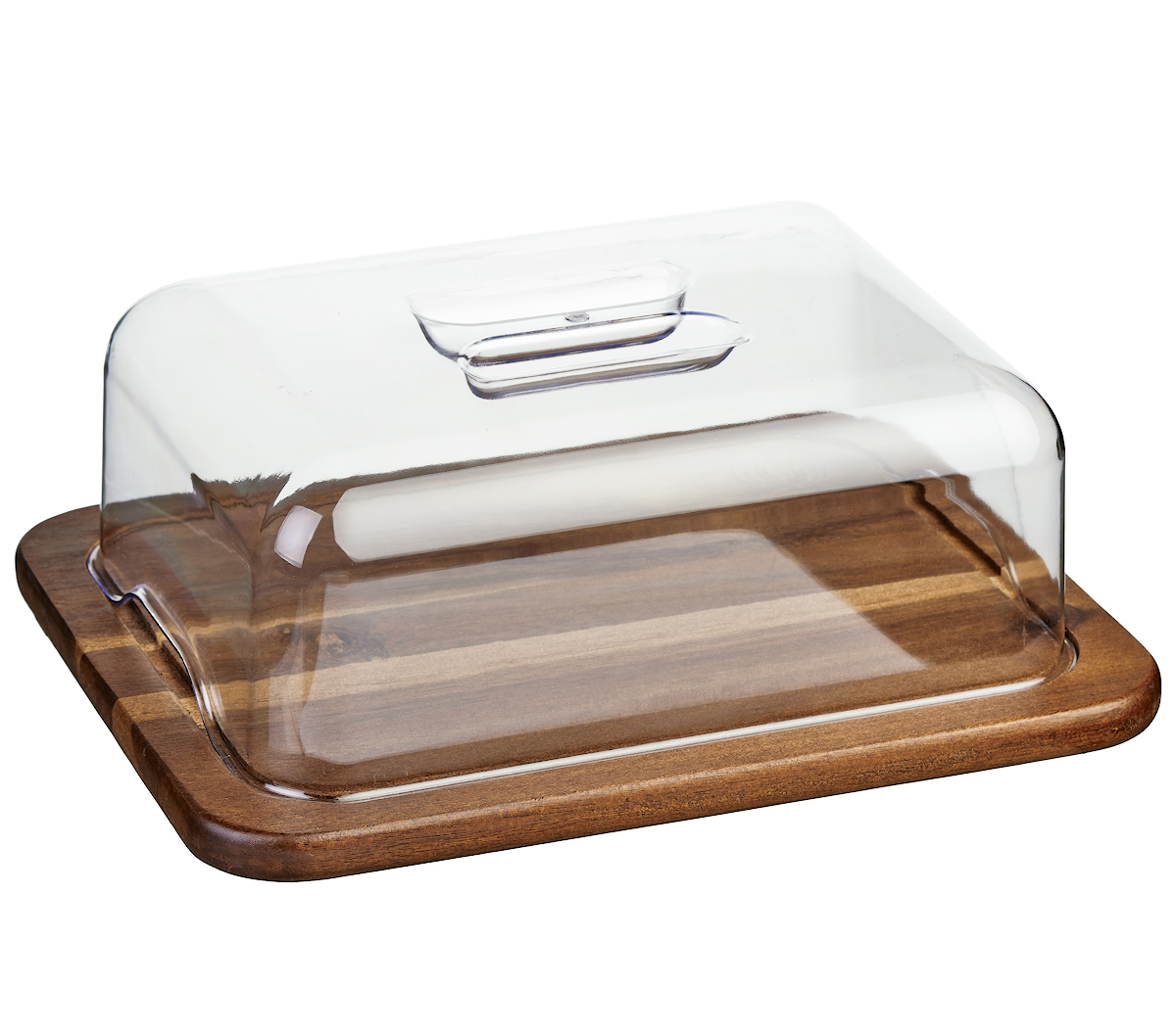 Блюдо с простым и лаконичным дизайном прекрасно подойдет для сервировки и хранения выпечки, десертов, фруктов, сыров и других продуктов. Крышка из выскокачественного пластика будет надежно защищать продукты от заветривания, что особенно актуально при сервировке на открытом воздухе или длительном хранении. Блюдо выполнено из акации, не уступающей по своим характеристикам изделиям из ясеня или дуба, отличается высокой прочностью и экологичностью. Благодаря качеству используемых материалов изделие прослужит долгие годы, сохраняя эстетичный внешний вид.