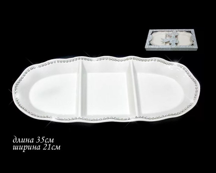 Овальное блюдо-менажница 35х21см, изготовлен из высококачественной керамики. Блюдо из серии Алмазная долина, будет прекрасно смотреться практически в любом интерьере, прекрасно украсит Ваш праздничный стол. Хорошо и надежно упакован в подарочную упаковку. Прекрасный подарок родным и близким. Подарок маме, сестре, подарок коллеге, подарок на новый год, подарок на 8 марта, подарок на день рождения, подарок на новоселье, подарок на любой праздник.