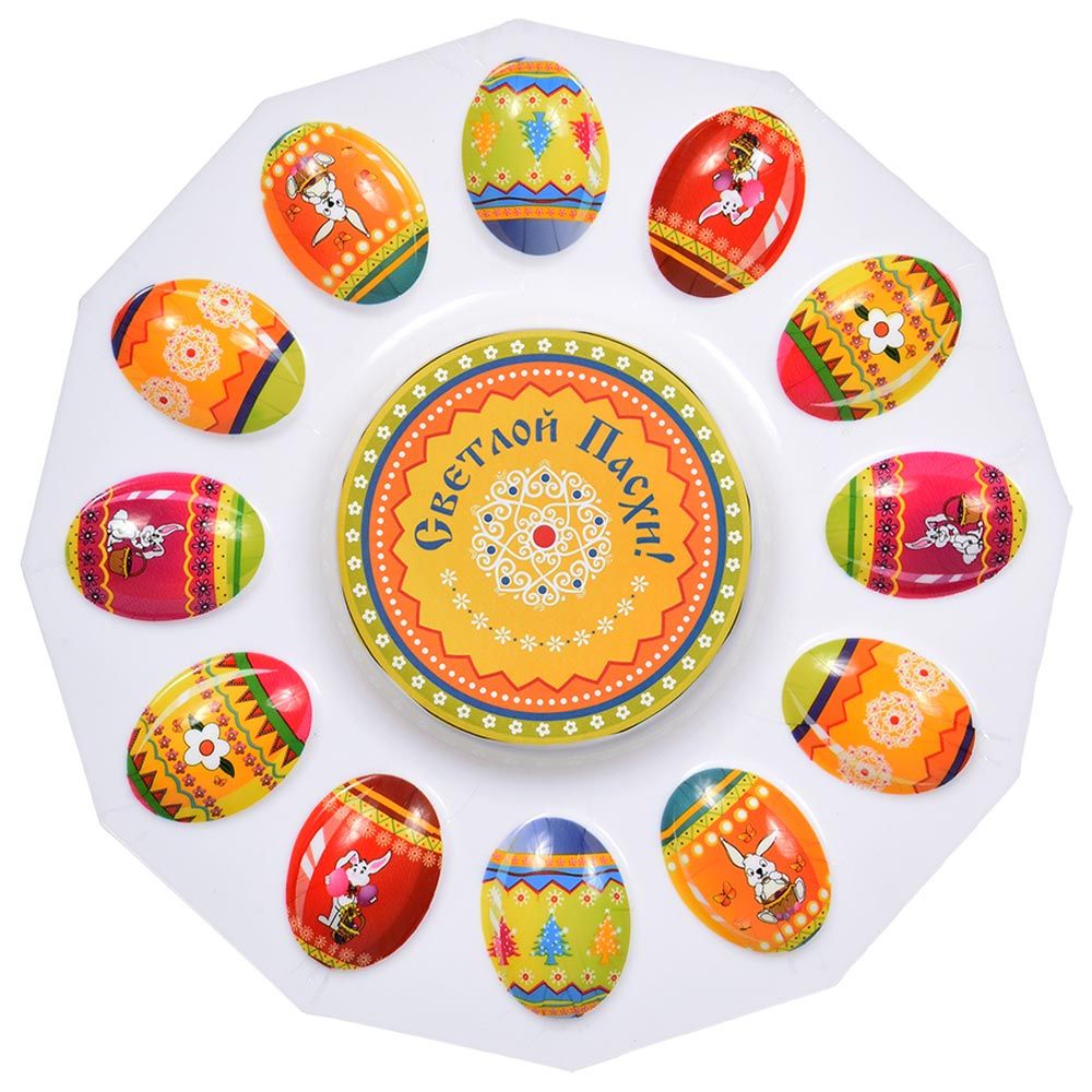 Блюдо служит в качестве подставки для 12 яиц и кулича.