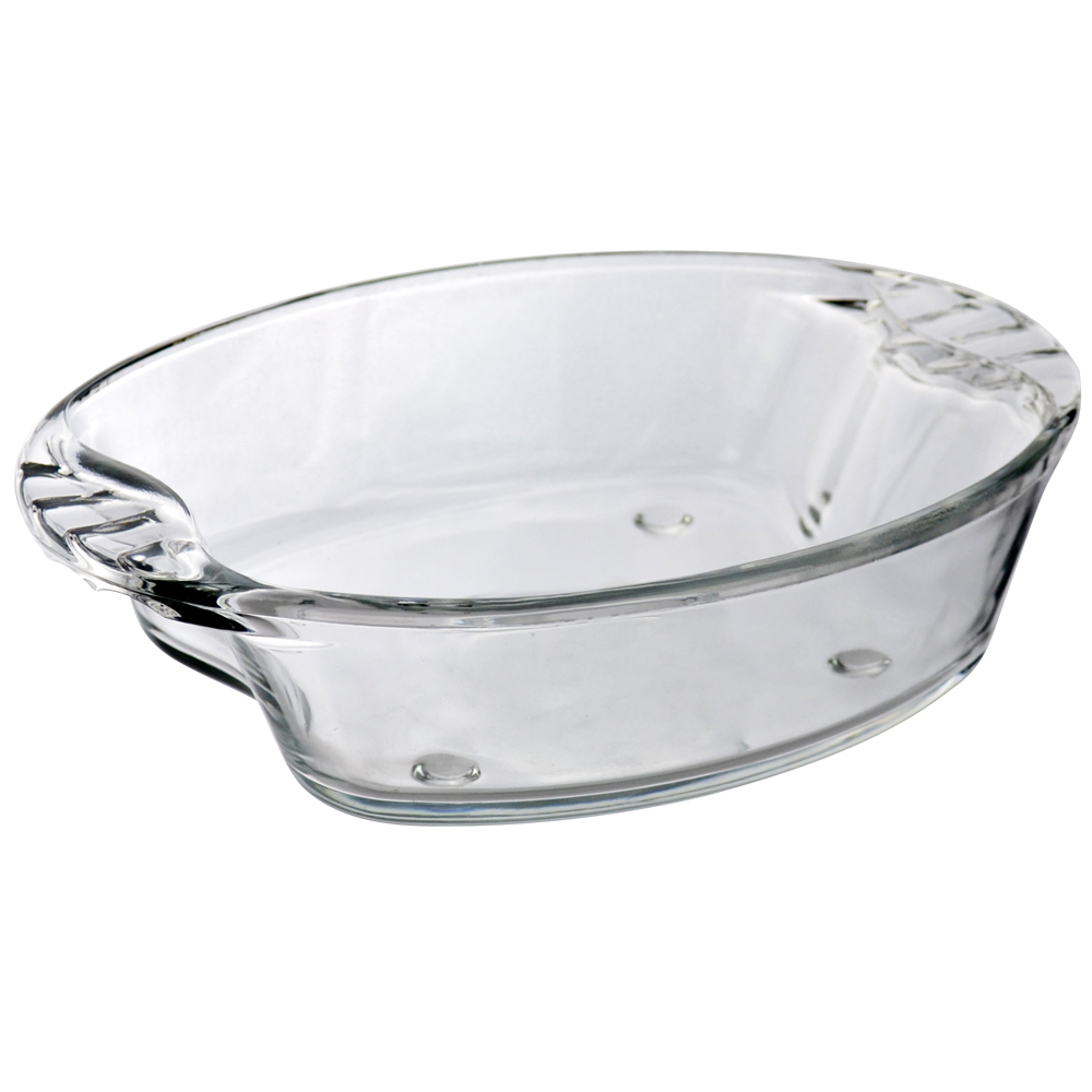 Блюдо стеклянное для запекания, гладкое с двумя небольшими ручками.