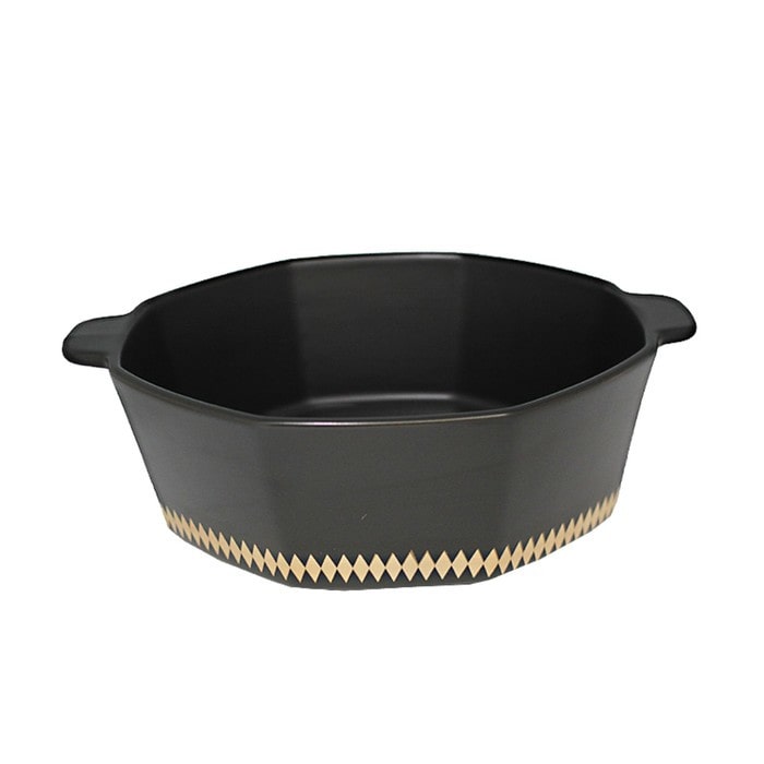 Серия Tekito изготовлена из высококачественного фарфора и представлена в двух цветах (черный и белый). Каждое изделие украшено по периметру узором из золотых ромбов. Отлично сочетаются друг с другом.