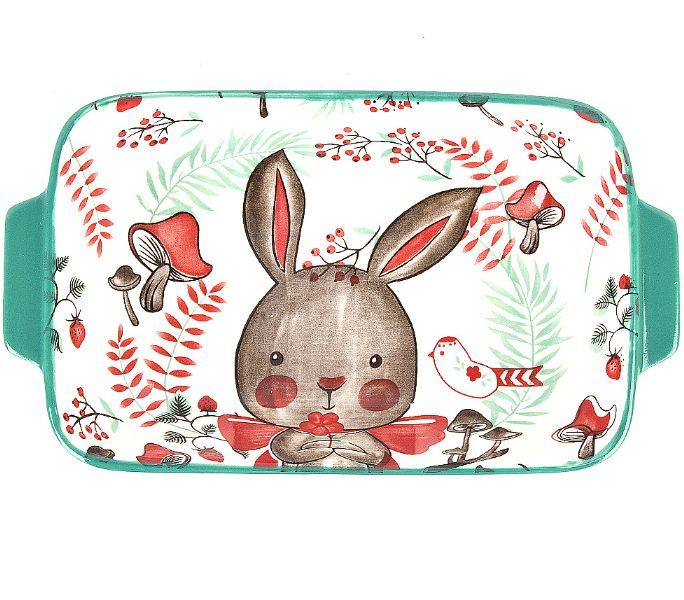 Блюдо прямоугольной фигурной формы с легка закругленными краями предназначено для сервировки закусок.