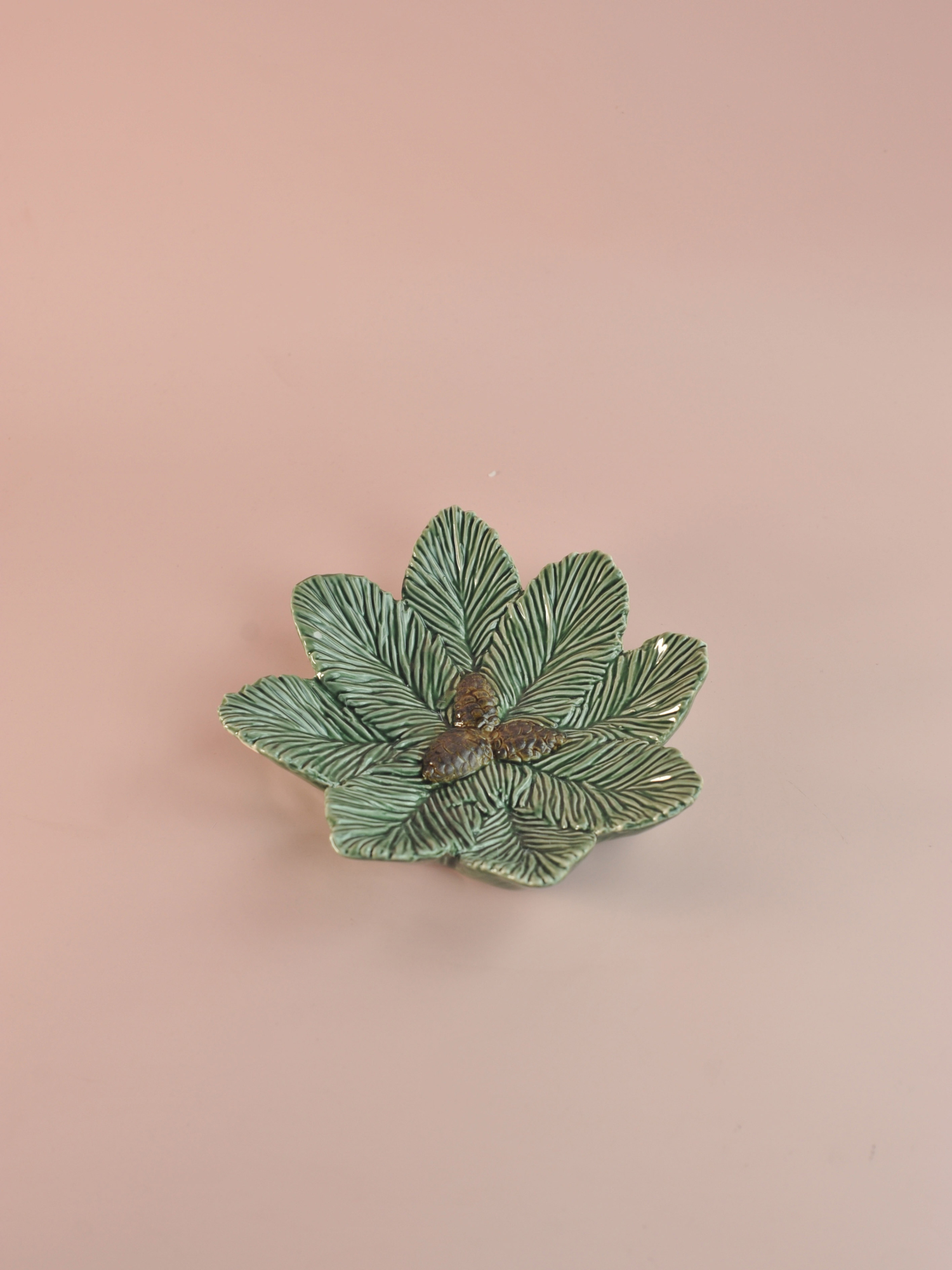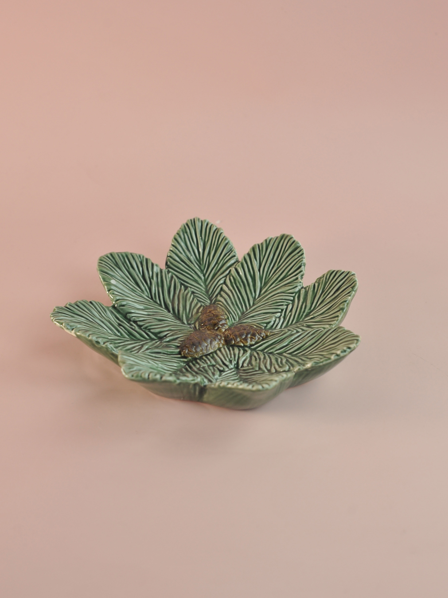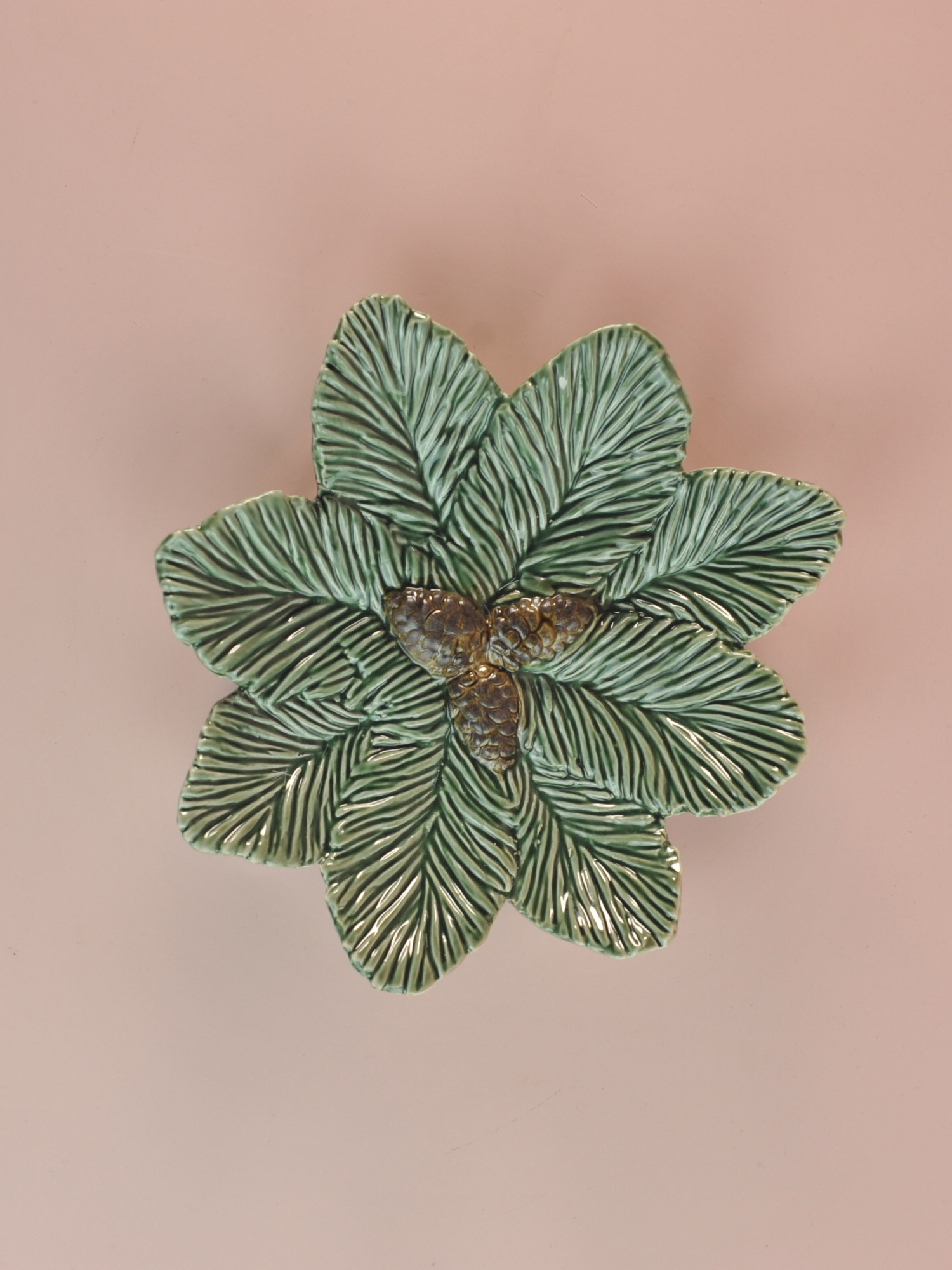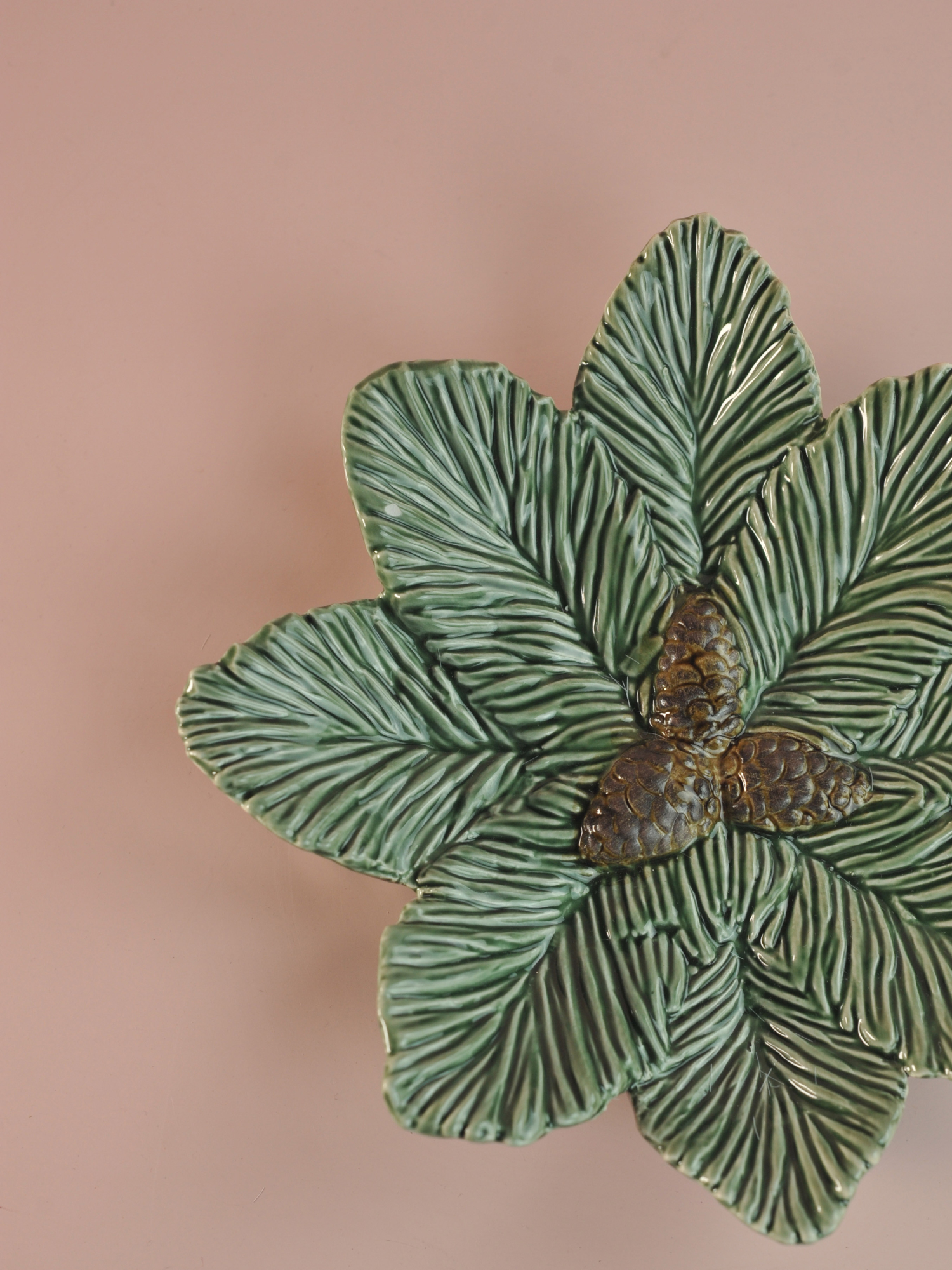 Наша посуда отличается насыщенными зелеными оттенками, которые ассоциируются с зимним лесом и свежестью природы. Объемные шишки и сосновые ветки, изящно оформленные на поверхности изделий, создают поистине волшебную атмосферу, способную перенести вас в сказочный лес. Эти элементы дизайна представлены с особым вниманием к деталям, что подчеркивает уникальность каждого изделия.