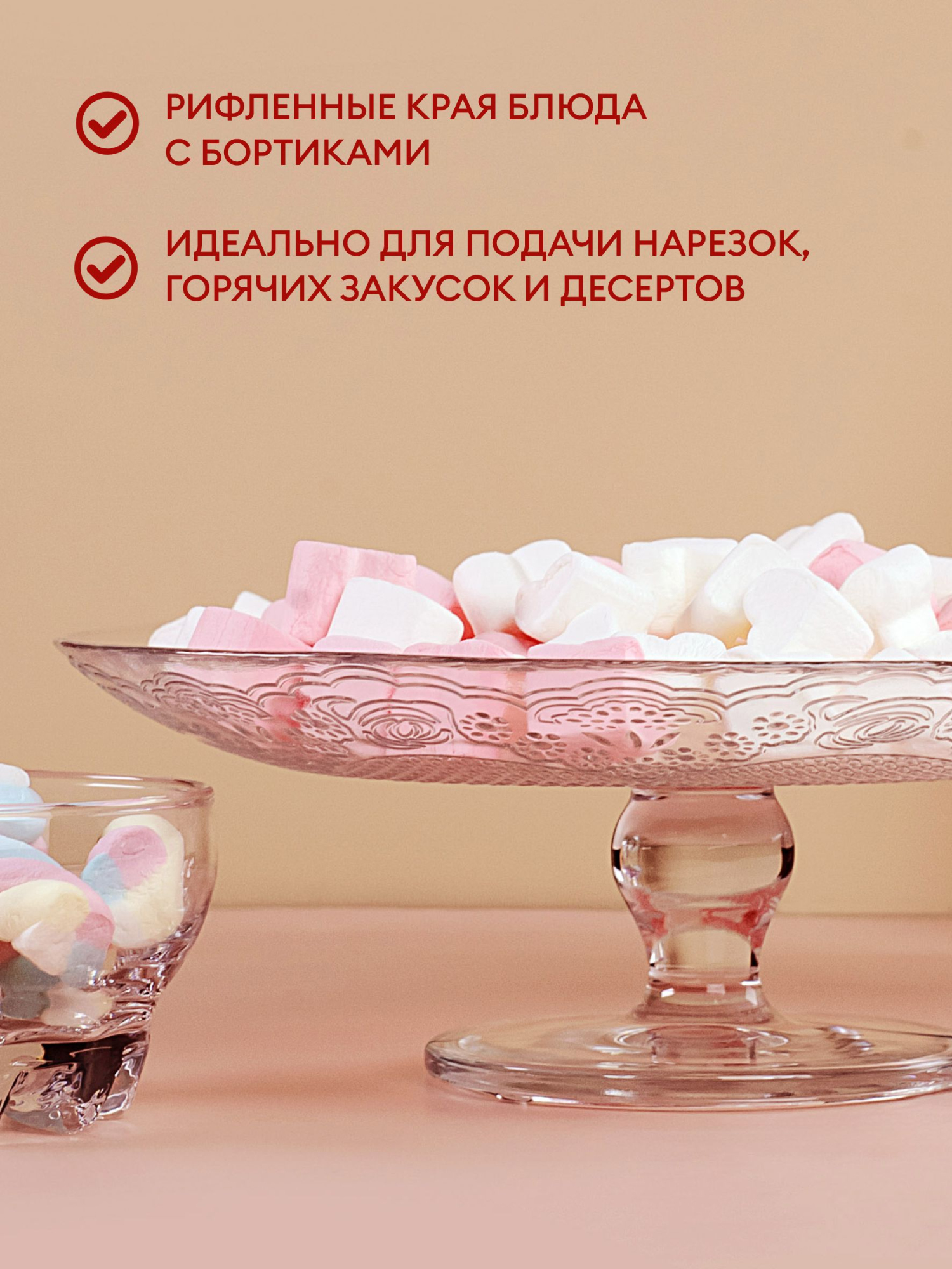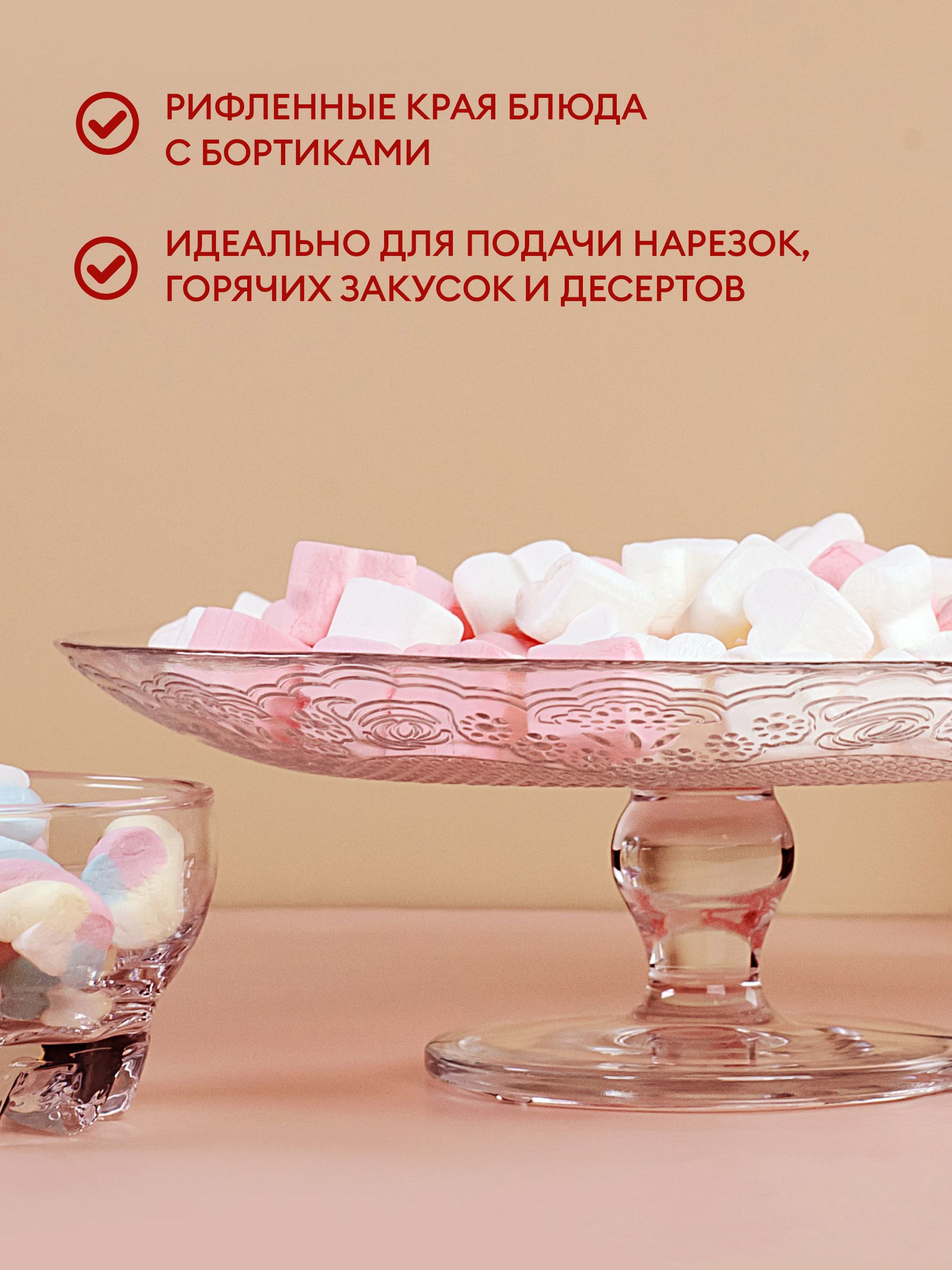 Блюдо "Лейси" на ножке из высококачественного упрочненного стекла от известного бренда Pasabahce.