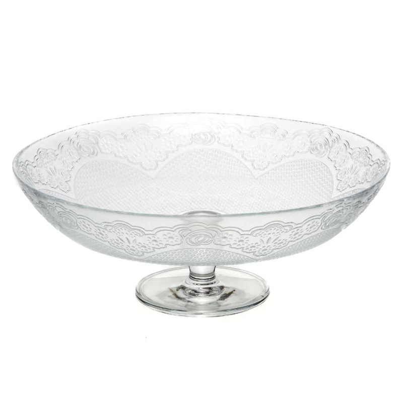 Блюдо на ножке Лейси изготовлено из упрочненного натрий-кальций-силикатного стекла. Диаметр 30см, высота 12 см. Поставляется в стильной упаковке.