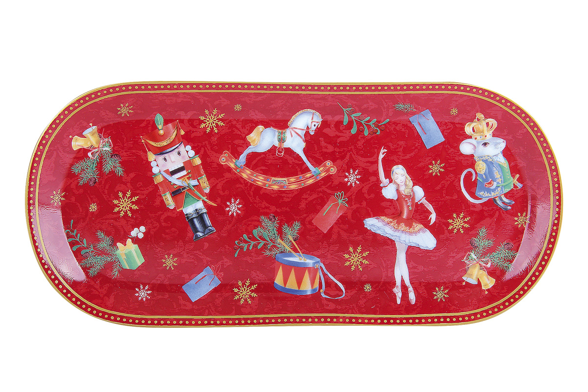 Овальное блюдо "Щелкунчик и Мышиный король" — это изысканный элемент сервировки, который станет прекрасным дополнением к вашему столу. Оно идеально подходит для подачи закусок, десертов или основных блюд, а также для украшения интерьера.