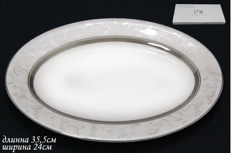Блюдо выполнено из костяного фарфора, упаковано в подарочную коробку и может стать прекрасным подарком.