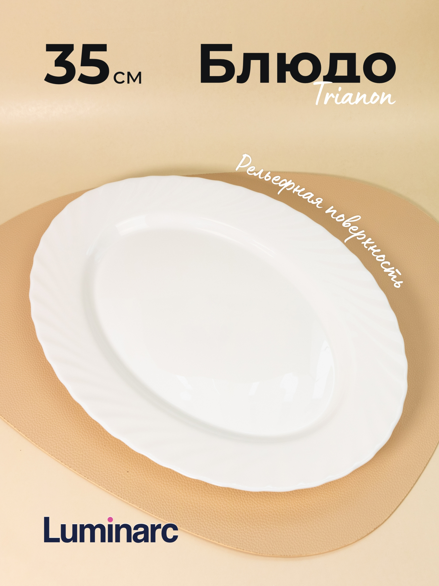 Блюдо овальное Trianon Luminarc может служить для сервировки домашнего обеденного или праздничного стола, а также эта посуда является бюджетным вариантом для сервировки столов в ресторанах и других подобных заведениях.