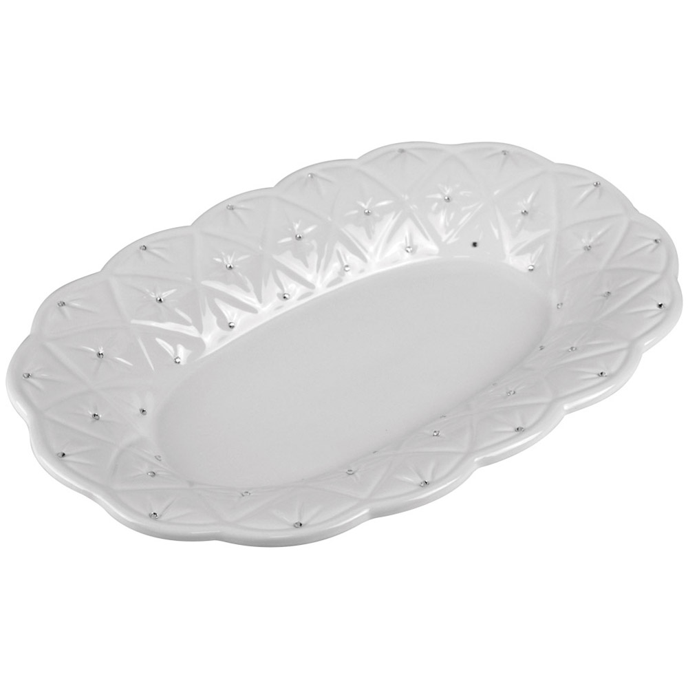 Изящное блюдо, изготовленное из высококачественной керамики и декорированное стразами, прекрасно подойдет для подачи нарезок, закусок и других блюд.