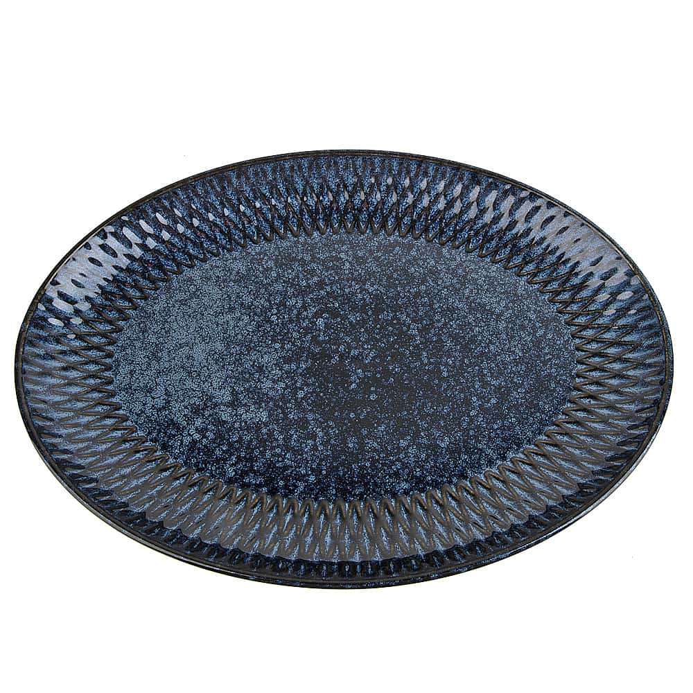 Сервировочное блюдо из коллекции "Бриз" изготовлено из высококачественной керамики, покрытой глазурью в глубоком синем цвете. Овальная форма идеально подходит для сервировки и подачи на стол закусок и вторых блюд.