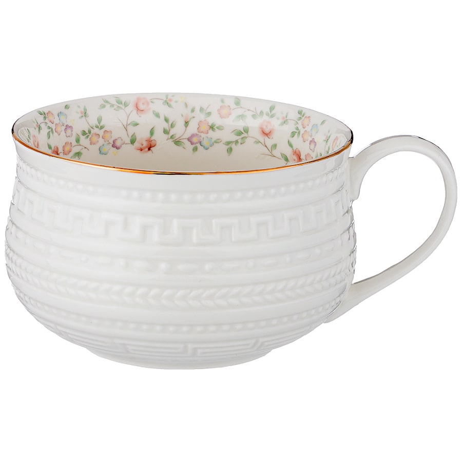 Выполнена из высококачественного фарфора и декорирована цветочным рисунком внутри и интересным рельефом снаружи.