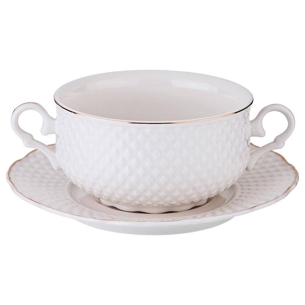Бульонница на подставке "Диаманд", украшенная объемным орнаментом, изготовлена из высококачественного фарфора.
