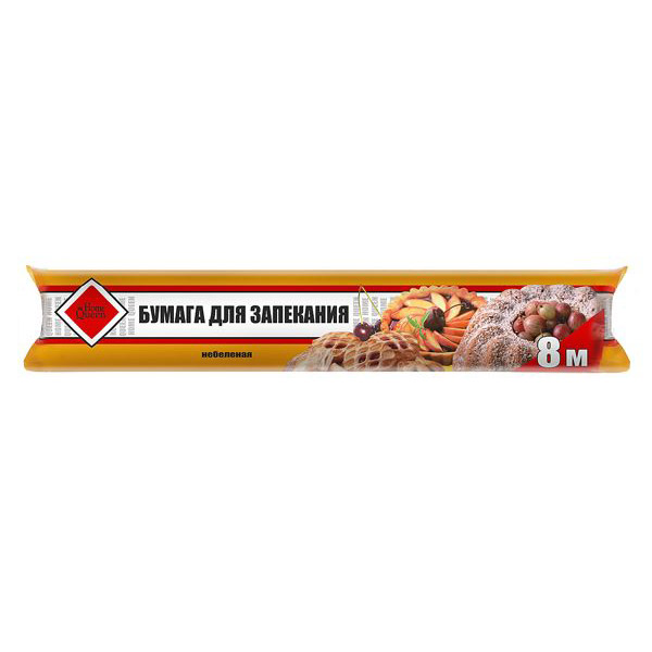 Небеленая бумага для запекания "Home Queen" в рулоне предназначена для запекания, упаковки и хранения пищевых продуктов.