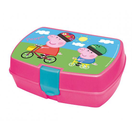 Посуда выполнена в розово-голубом цвете и украшена изображением Свинки Пеппы и ее брата.