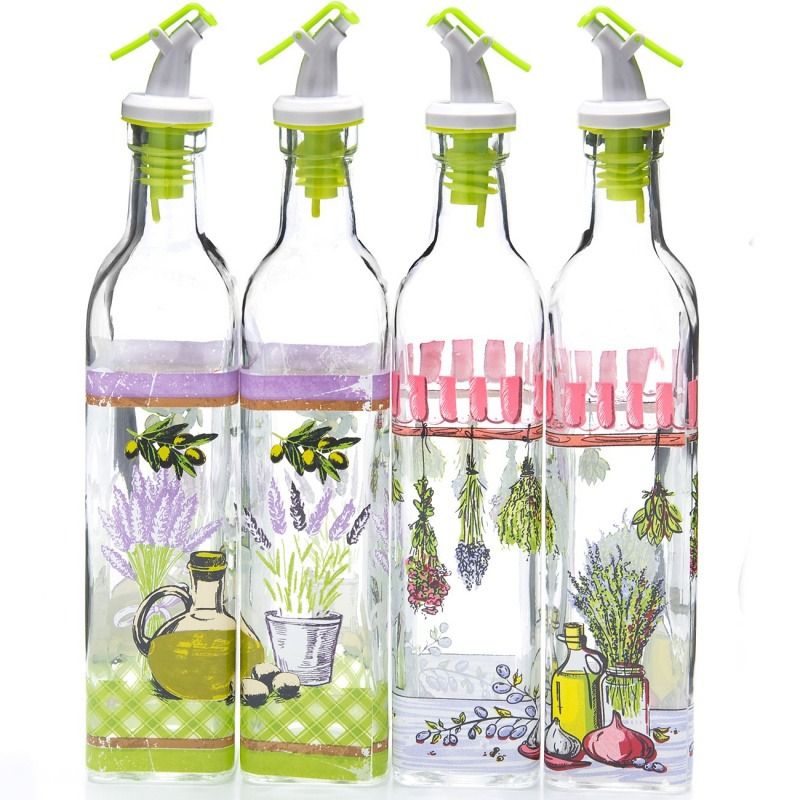 Бутылка для масла/уксуса выполнена из высококачественного стекла и декорирована красочным рисунком.