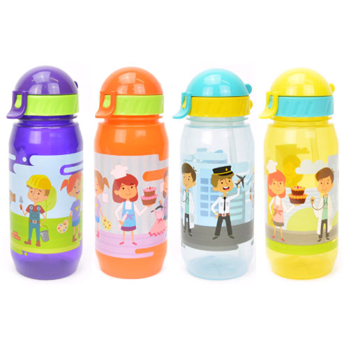 Детская бутылочка с рисунком Профессии прекрасно подойдет для воды и соков. Поможет ребенку выучить профессии в игровой форме. Изделие выполнено из безопасного многоразового пластика-полипропилена. Бутылочка оснащена силиконовой трубочкой, которая не травмирует полость рта ребенка и облегчает процесс питья при движении. В комплекте идет шнурок для бутылочки.