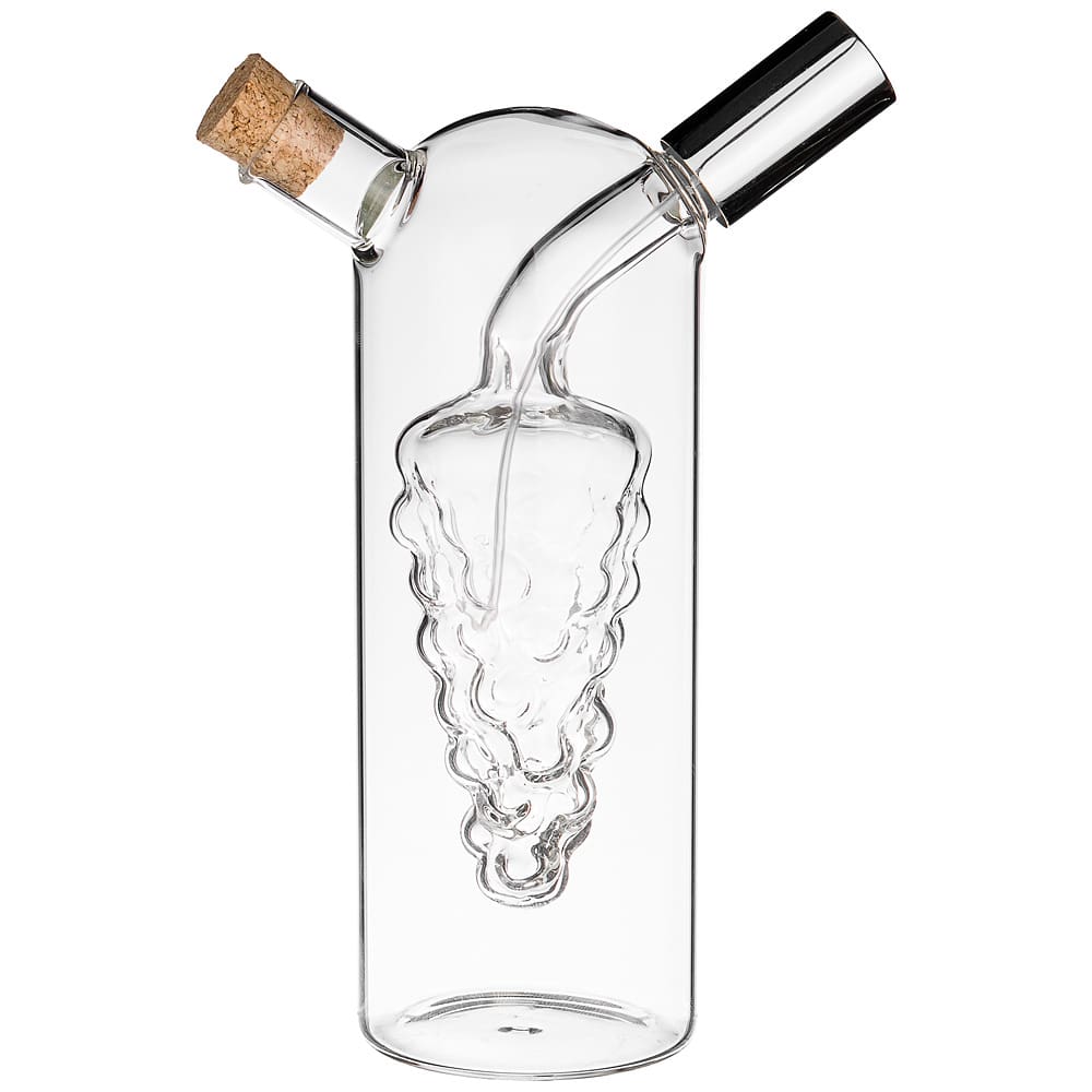 В такой бутылке можно одновременно хранить и сервировать два вида соусов-например уксус и масло. Емкости находятся одна внутри другой и имеют разные носики с пробками. Так из одной емкости можно налить масло, а из другой-уксус. Такой необычной, но функциональной бутылкой можно приятно удивить родных и друзей.