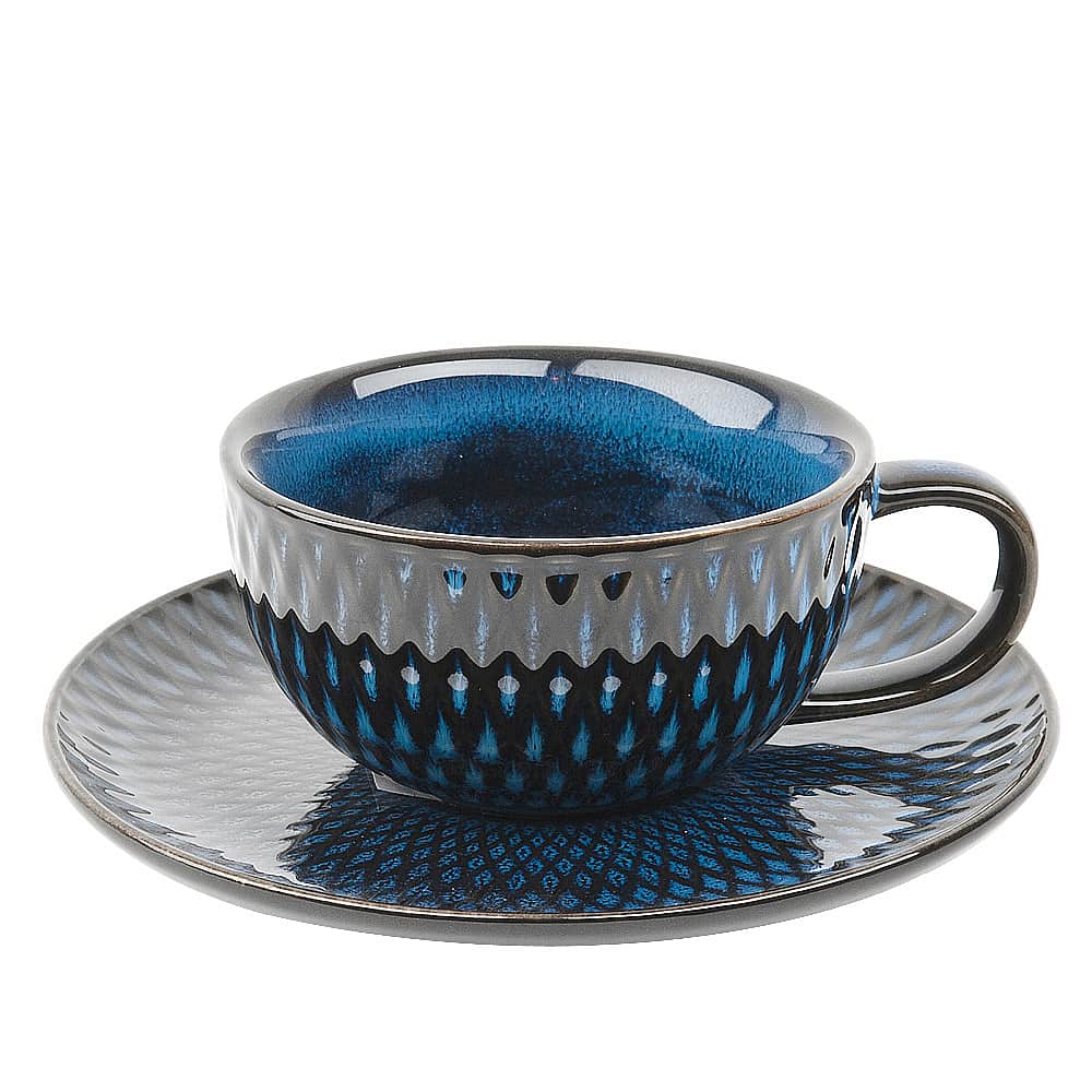 Чашка с блюдцем "Бриз" выполнена из керамики и покрыта невероятной синей глазурью.