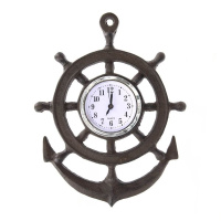 Часы настенные декоративные "Якорь-штурвал " изготовлены из металла. Циферблат белый круглый с арабскими цифрами, закрывается стеклом. Работает от батарейки типа LR 44 - 1 шт. Крепление - металлическая петля.
