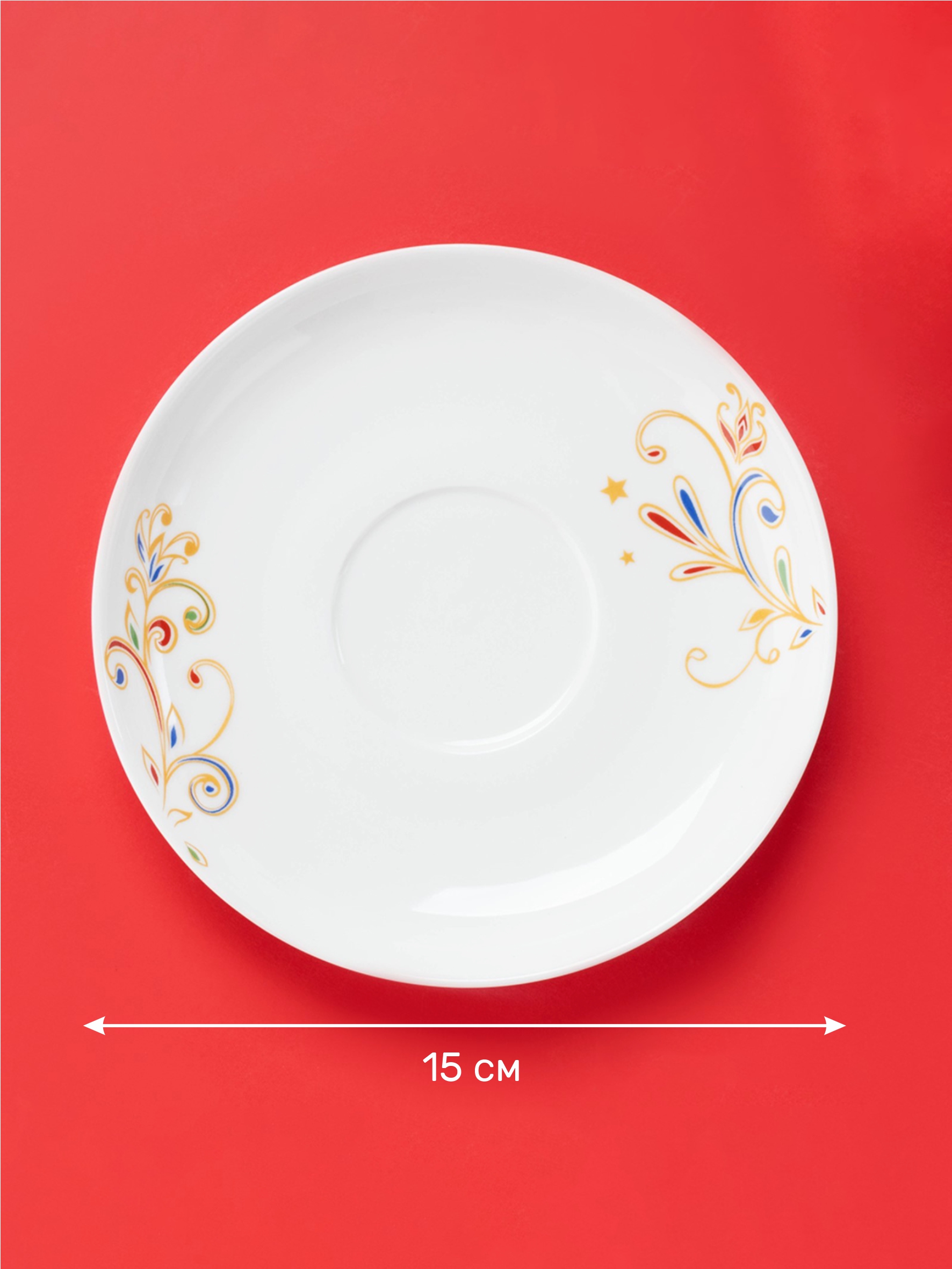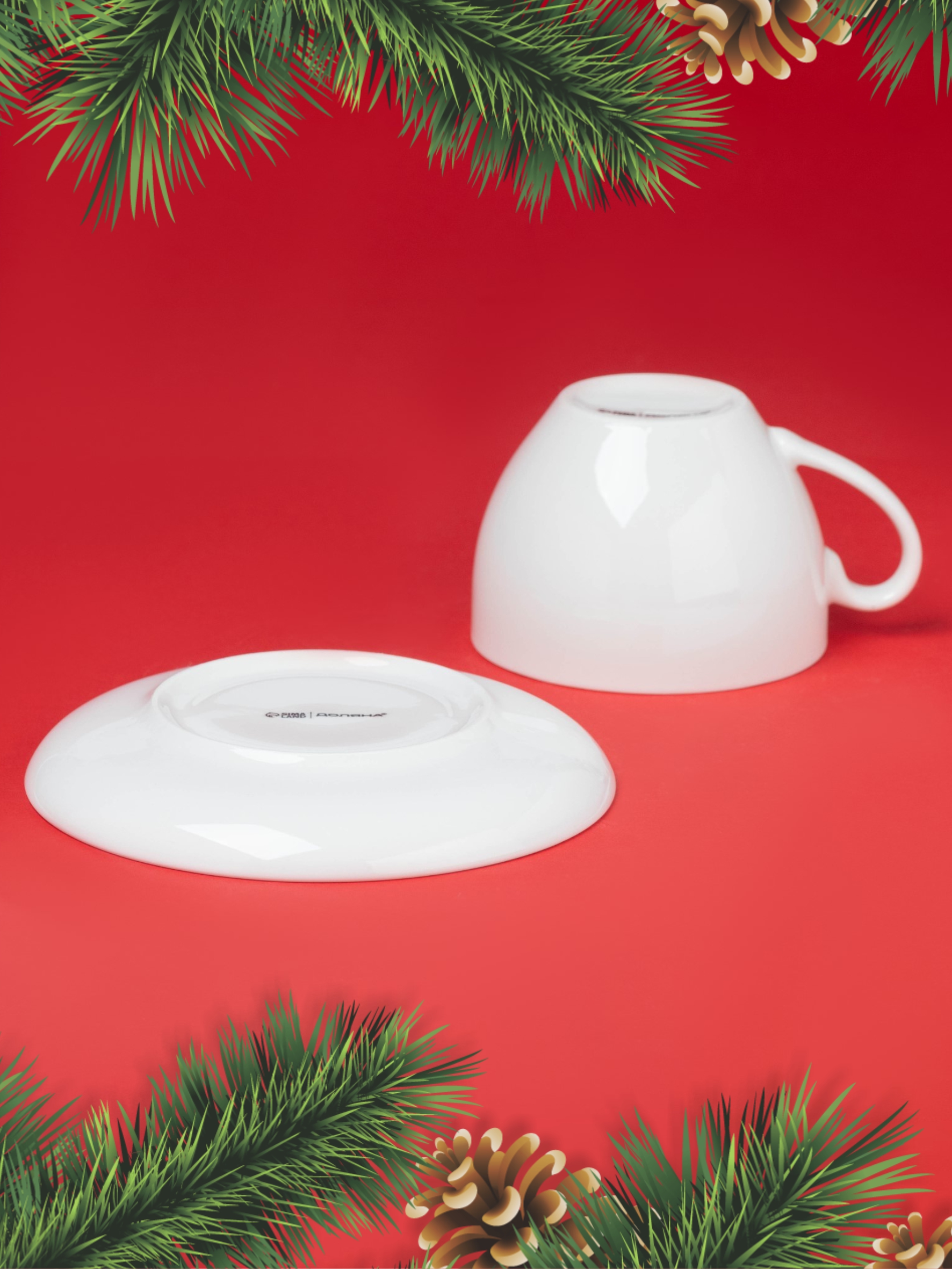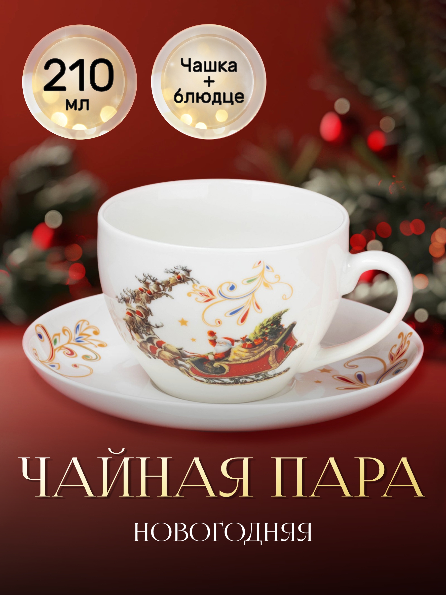 Объем чашки — 210 мл, диаметр блюдца — 15 см, а качество фарфора гарантирует долговечность и эстетическое наслаждение. Эта пара создана для тех, кто ценит классический стиль и романтику новогоднего декора. Она замечательно дополнит новогодний стол, создавая атмосферу праздника и спокойствия.