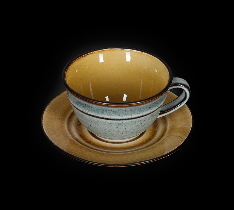 При производстве посуды "Corone Tesoro" применяется двухшаговый кракелюр, в результате которого образуется паутина тонких трещин.