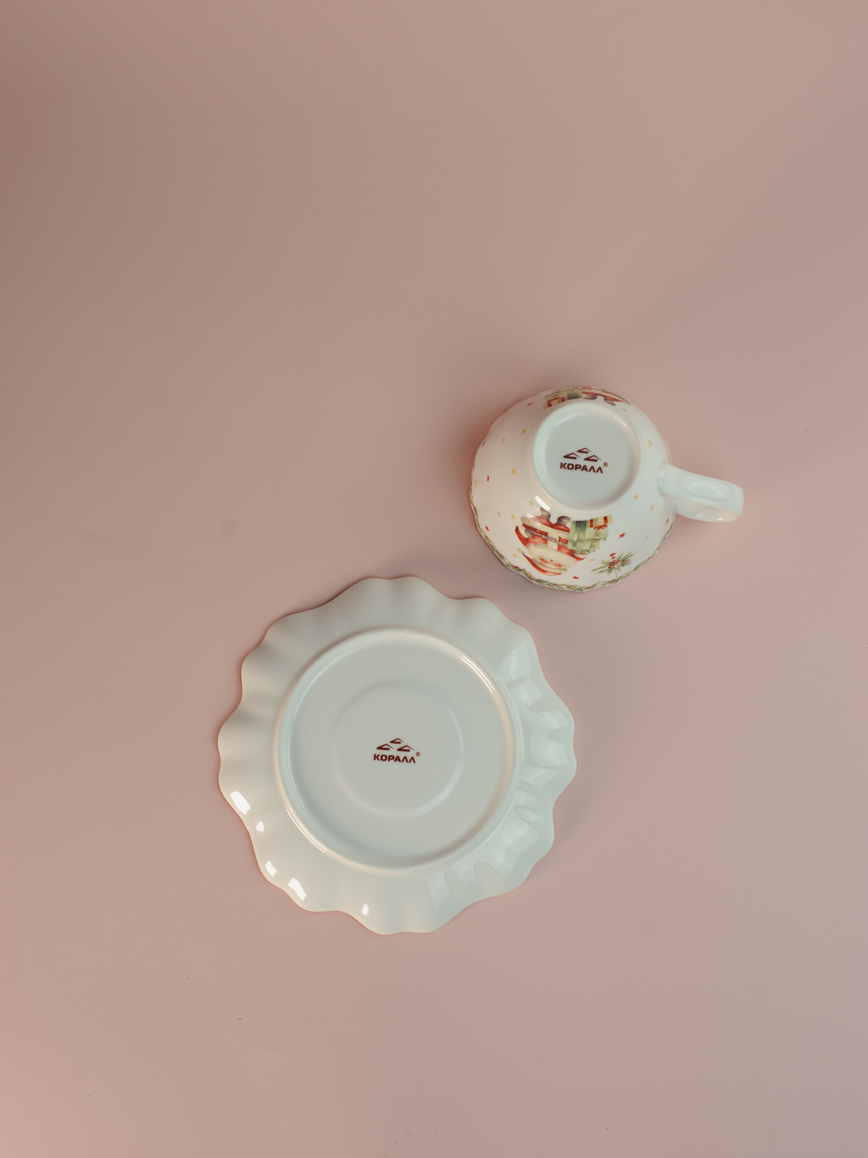 "Чайная пара "Новогоднее настроение" - прекрасный подарок к Новому году! Изящная чашка и блюдце с праздничным дизайном создадут атмосферу волшебства и уюта в вашем доме.