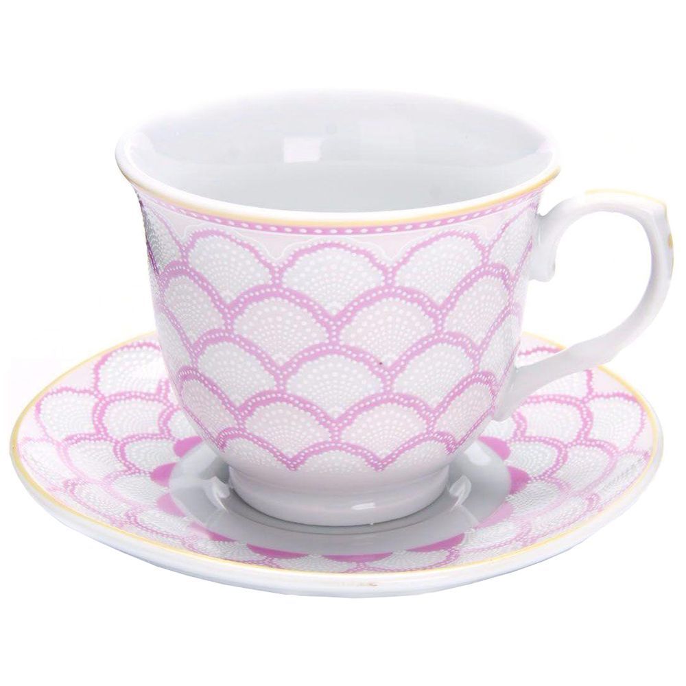 Чайная пара выполнена из фарфора.